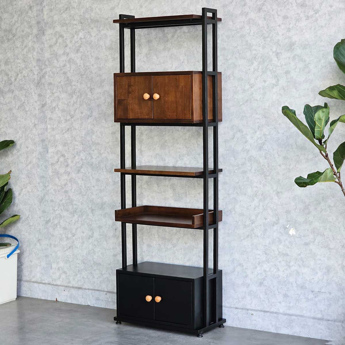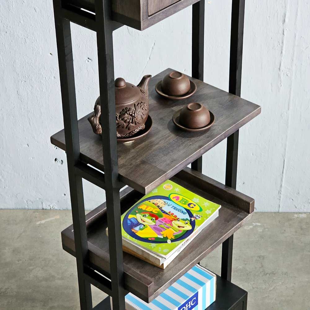 Khung sắt 2 thanh song song chạy dọc theo kệ vừa đảm bảo độ chắc chắn, vừa góp phần tô điểm cho vẻ ngoài hiện đại của kệ