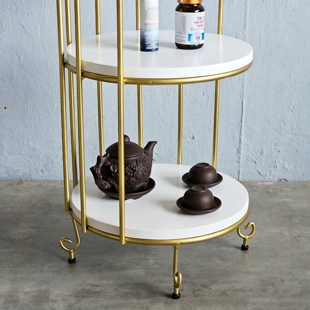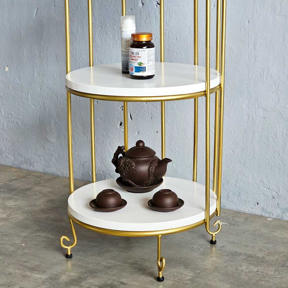 Kệ trưng bày lồng chim KTB68083 với thiết kế độc đáo, sáng tạo hứa hẹn là món đồ trang trí ấn tượng, hút mắt từ ánh nhìn đầu tiên. Mặt gỗ màu trắng kết hợp khung sắt sơn màu vàng đồng mang đến vẻ ngoài bắt mắt. Bên cạnh đó với 4 tầng kệ bạn có thể thoải mái bài trí và trưng bày những món đồ yêu thích của mình một cách dễ dàng.Mỗi chi tiết cầu kỳ được gia công và hoàn thiện một cách cẩn thận, tỉ mỉ nhằm đem đến sản phẩm có chất lượng và tính thẩm mỹ cao.