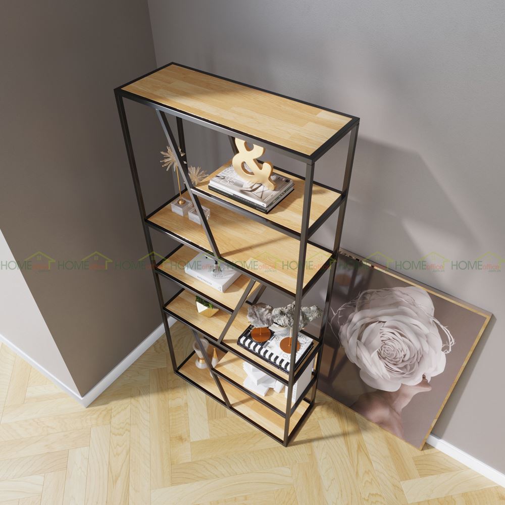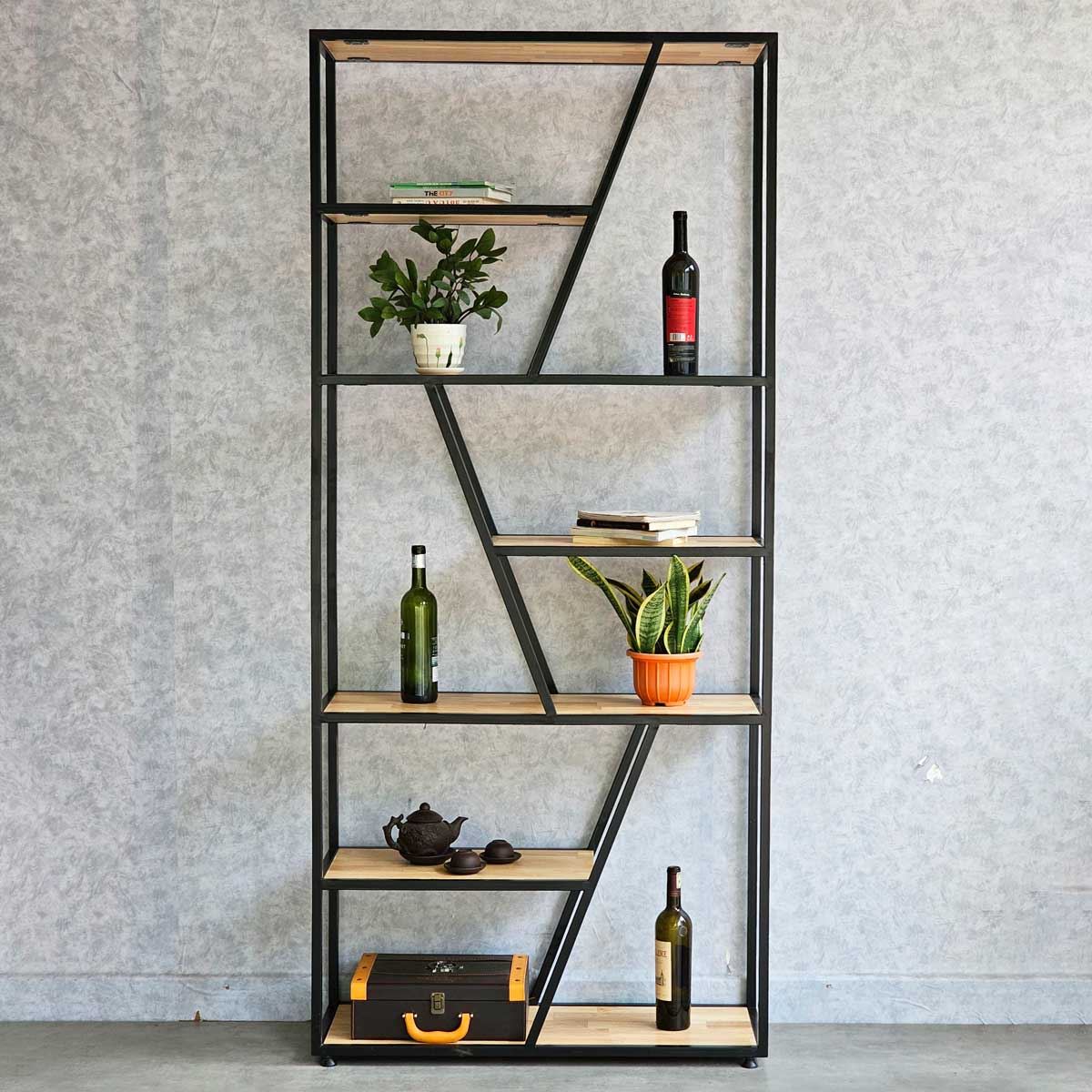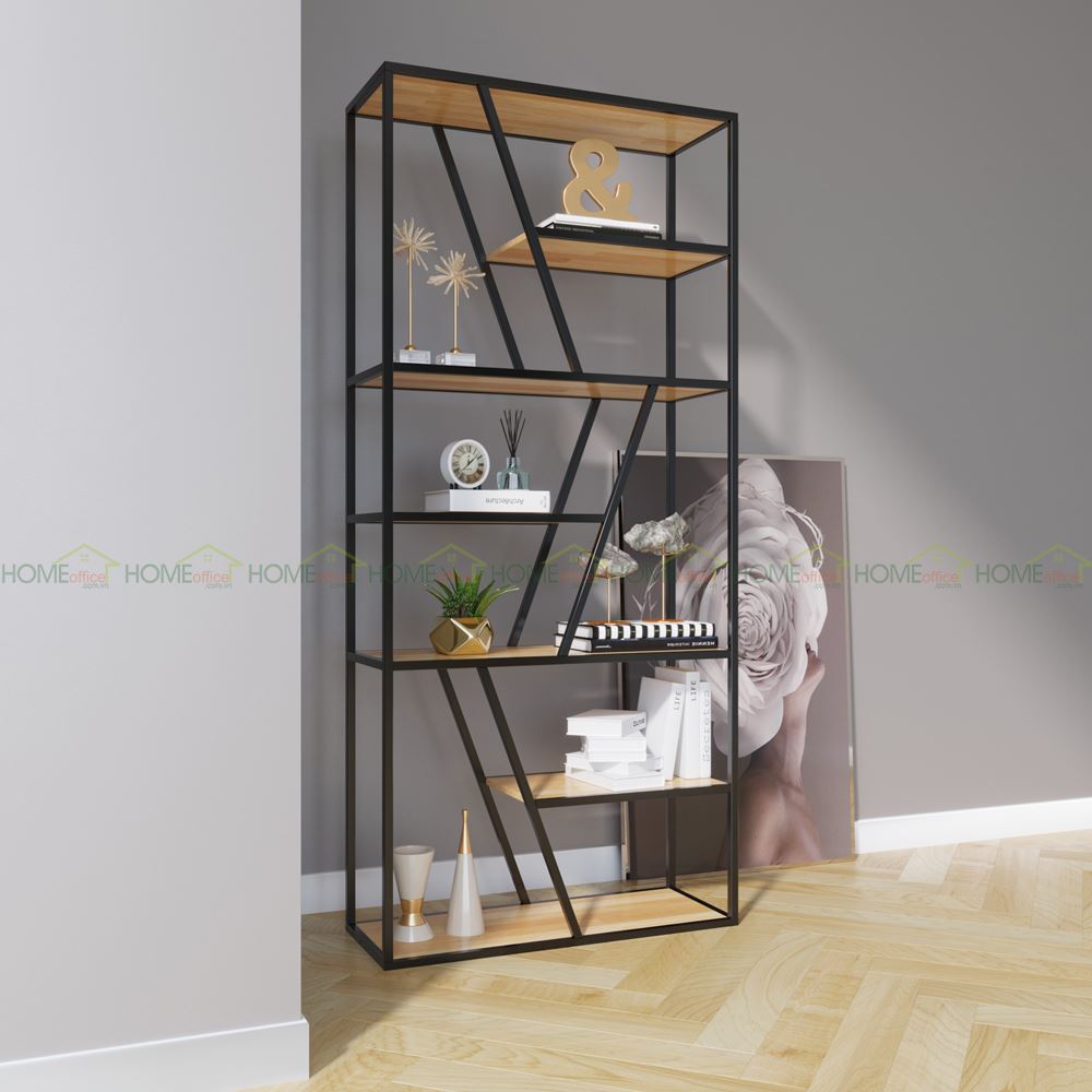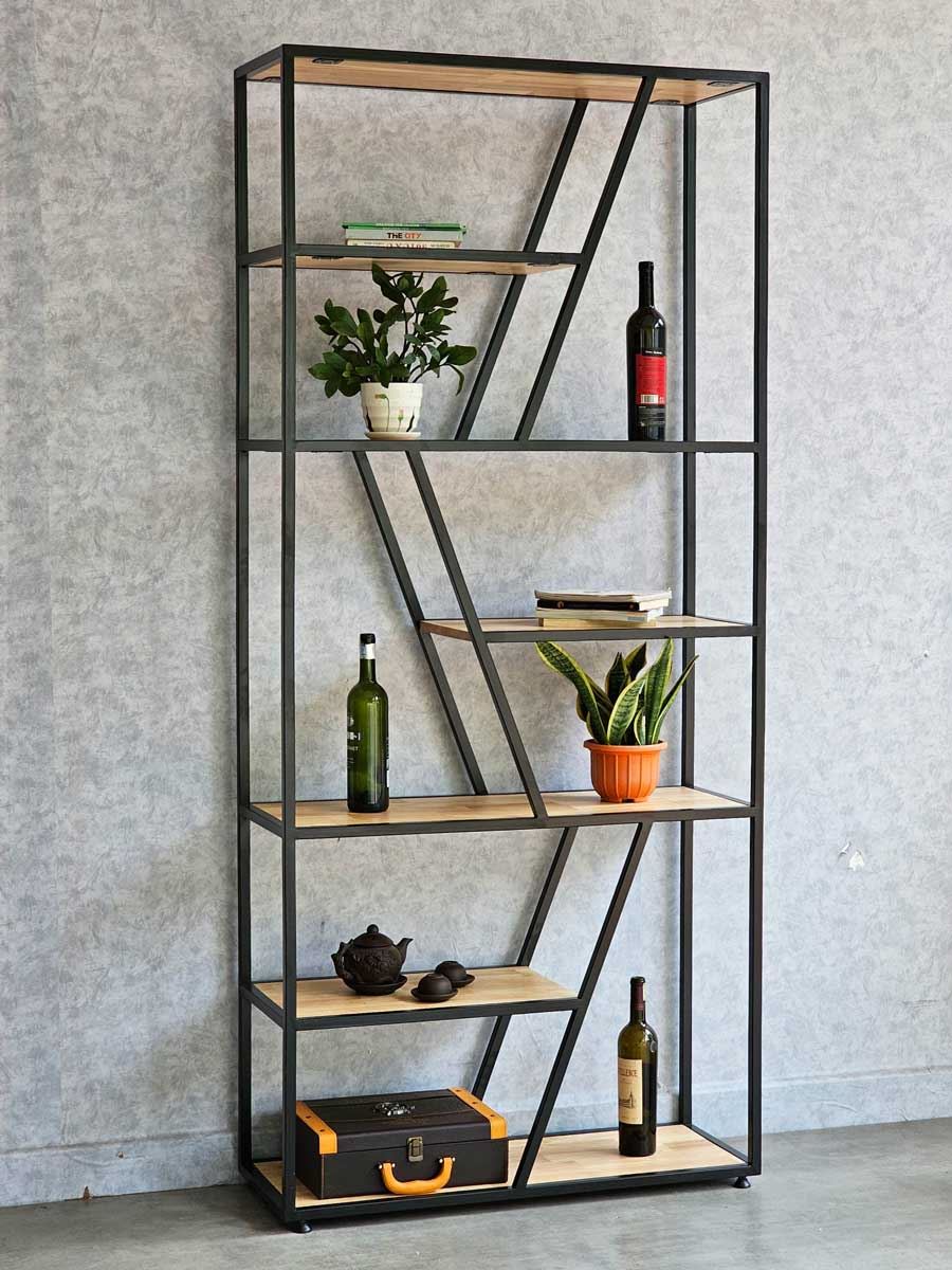 Kệ gỗ khung sắt có khả năng tạo điểm nhấn ấn tượng cho căn phòng