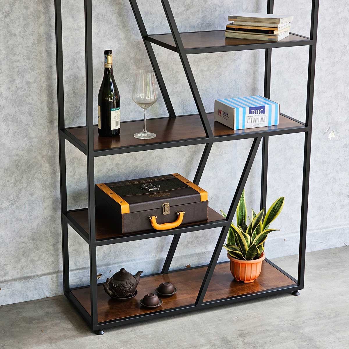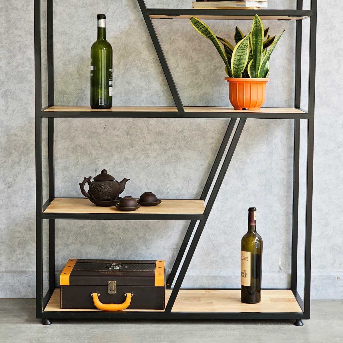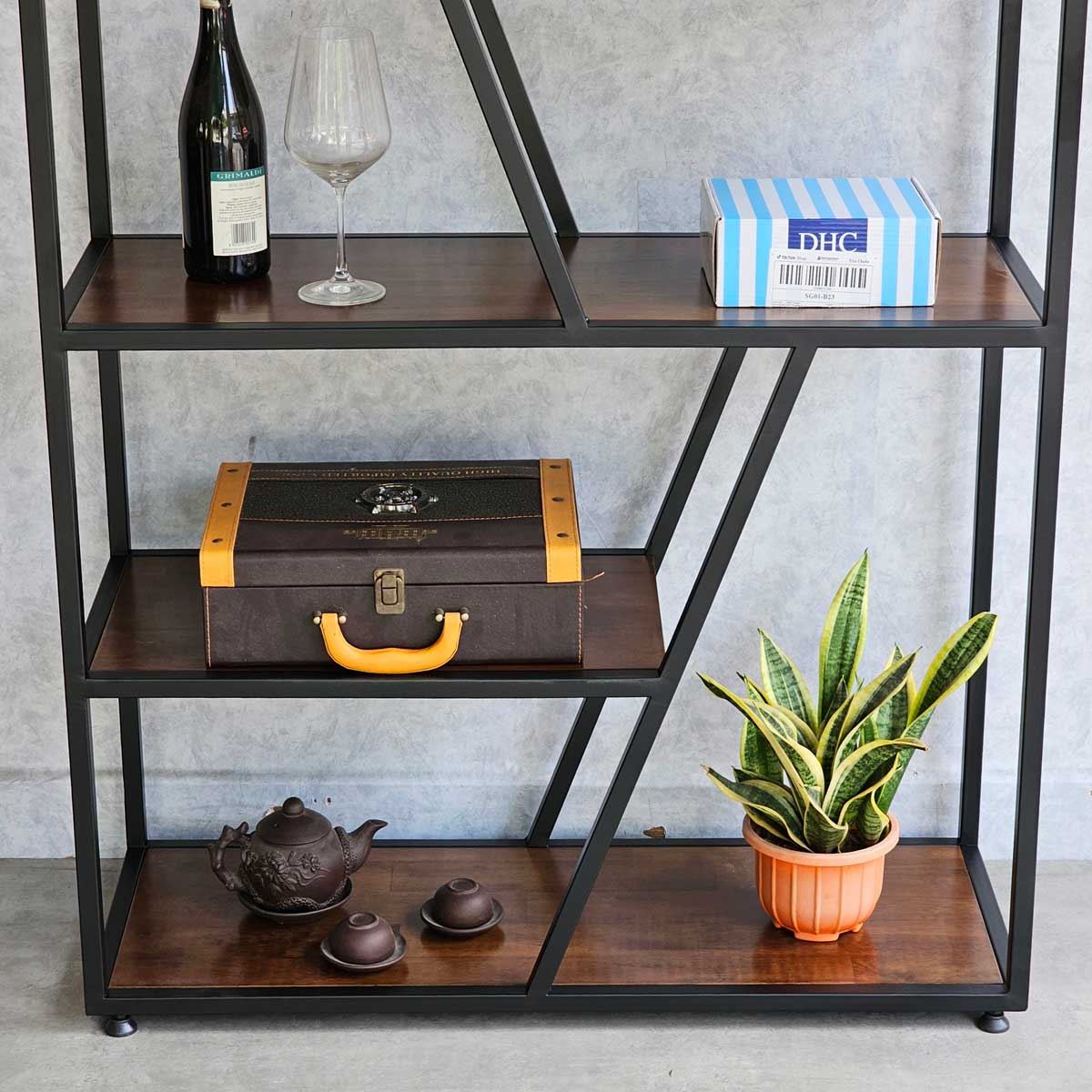 Kệ gỗ khung sắt có khả năng tạo điểm nhấn ấn tượng cho căn phòng