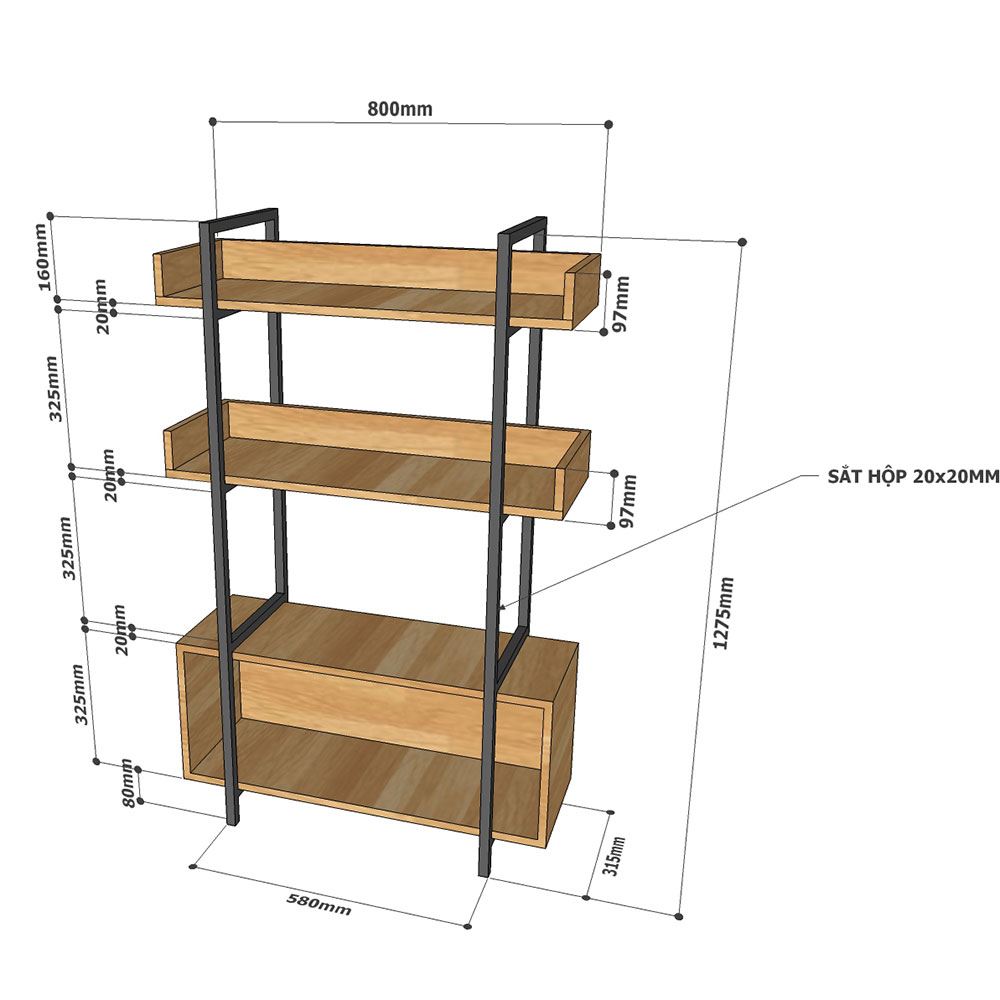 Kích thước chi tiết kệ VERNON có hộc tủ