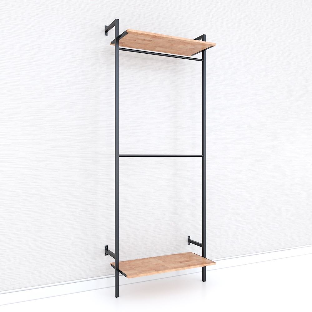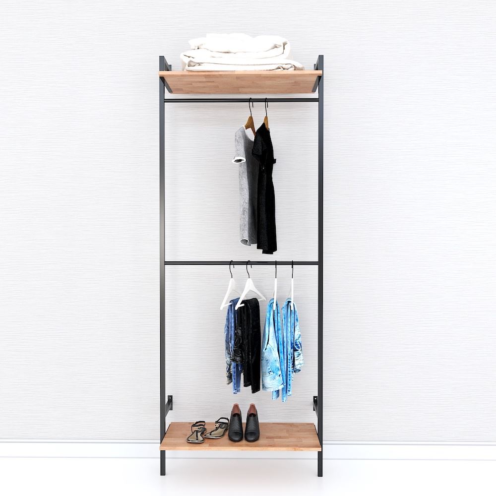 Kệ treo quần áo 2 tầng đơn giản gỗ cao su khung sắt