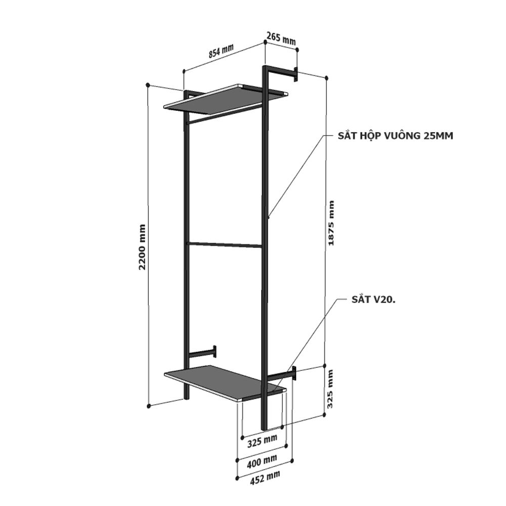Kích thước kệ treo quần áo 2 tầng KQA68050