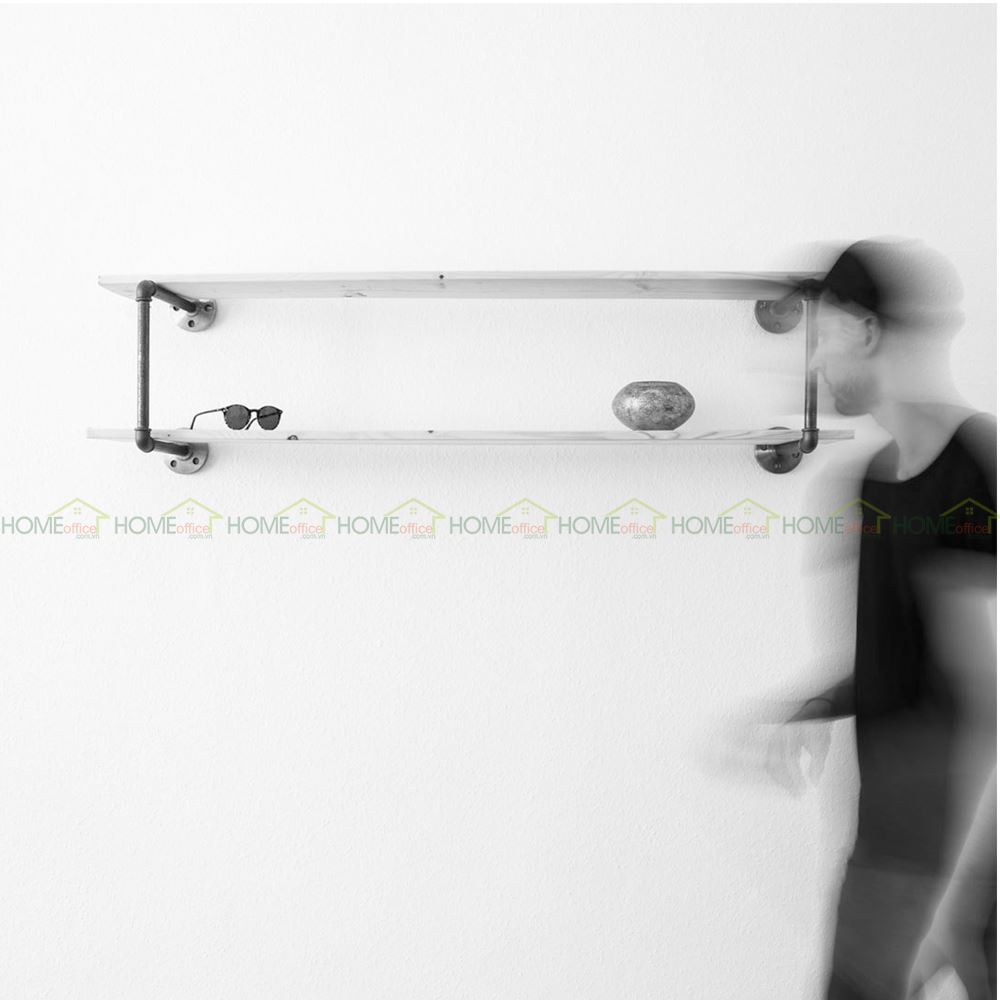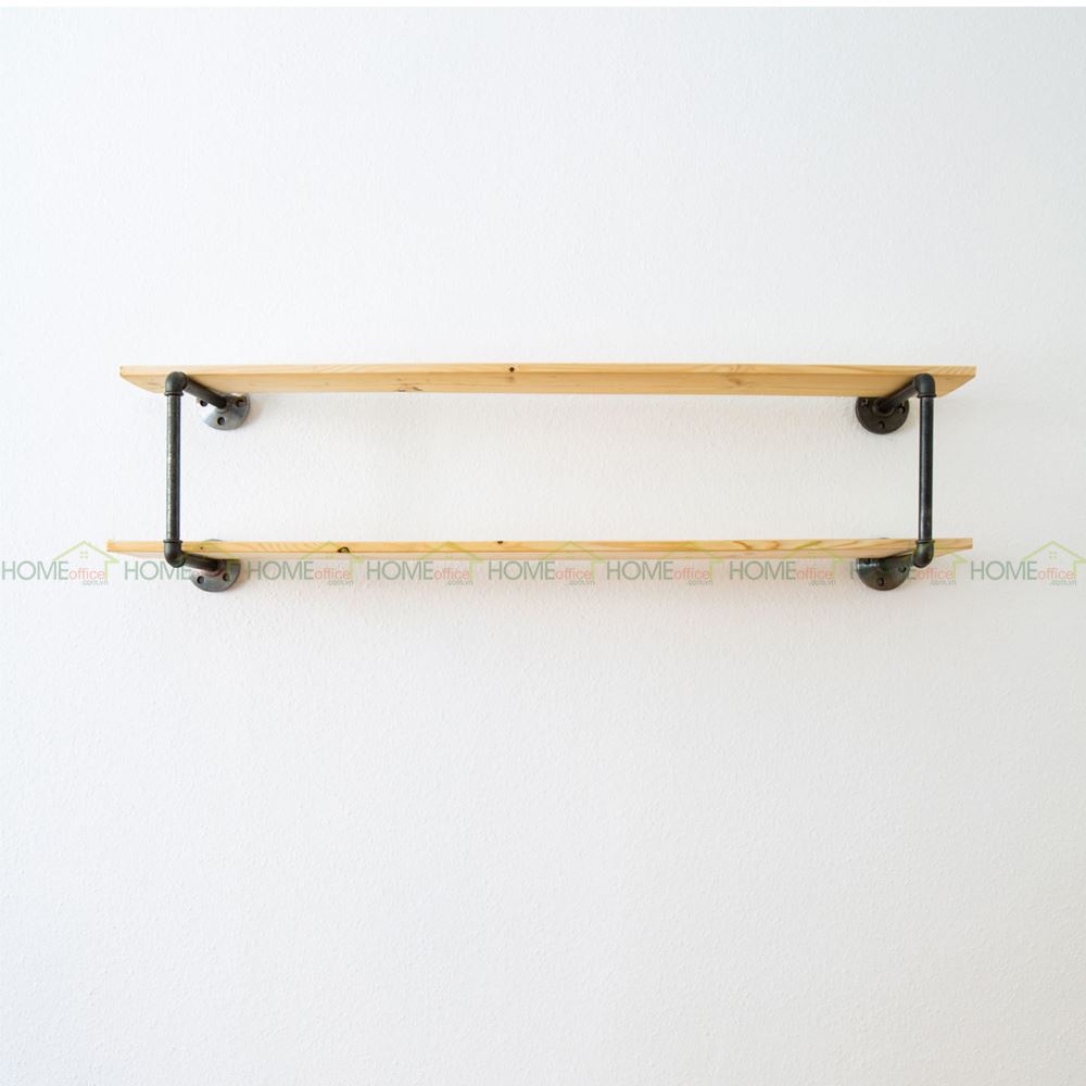 KTT68013 - Kệ treo tường ống nước 2 tầng - 80x30x40 (cm) - Mộ sản phẩm trong bộ sản phẩm nội thất ống nước của HomeOffice với chất liệu được làm từ ống thép Nguyễn Minh dày 2.5 mm có tiện ren, phụ kện ống nước kết hợp với đó là gỗ cao su với tiêu chuẩn xuất khẩu.