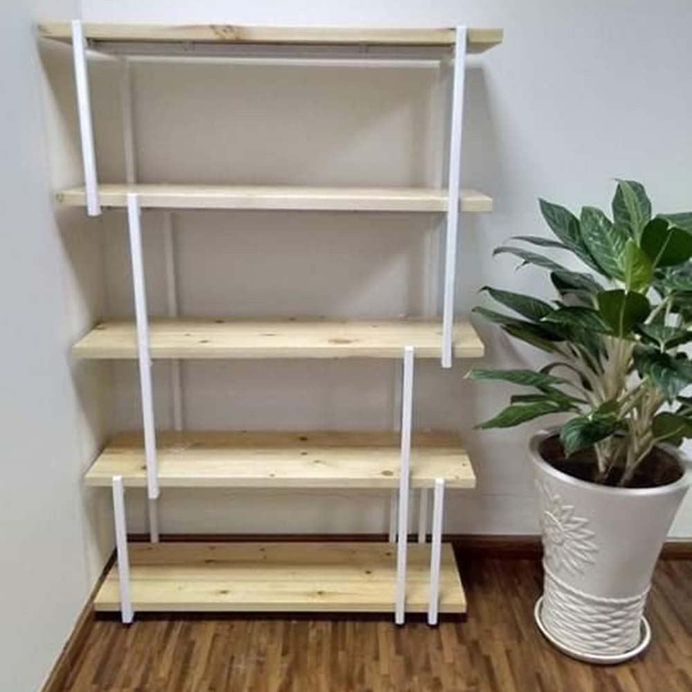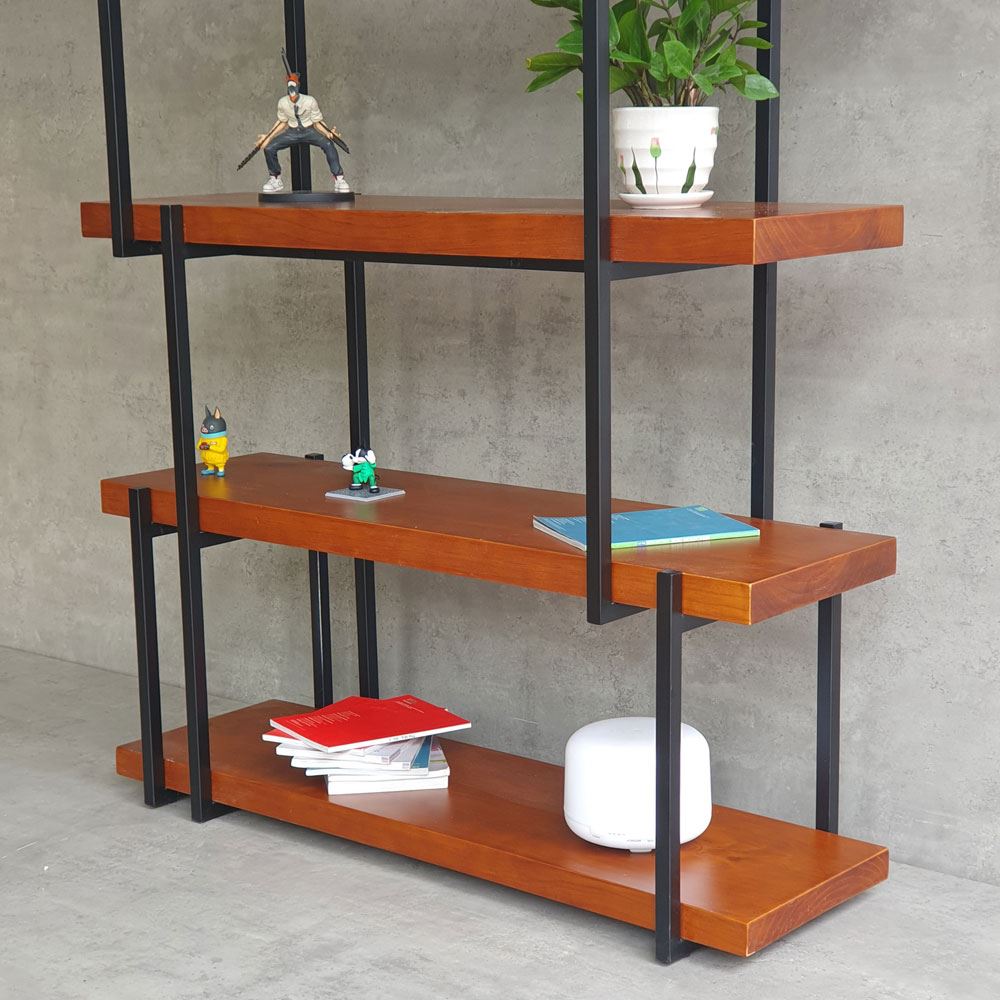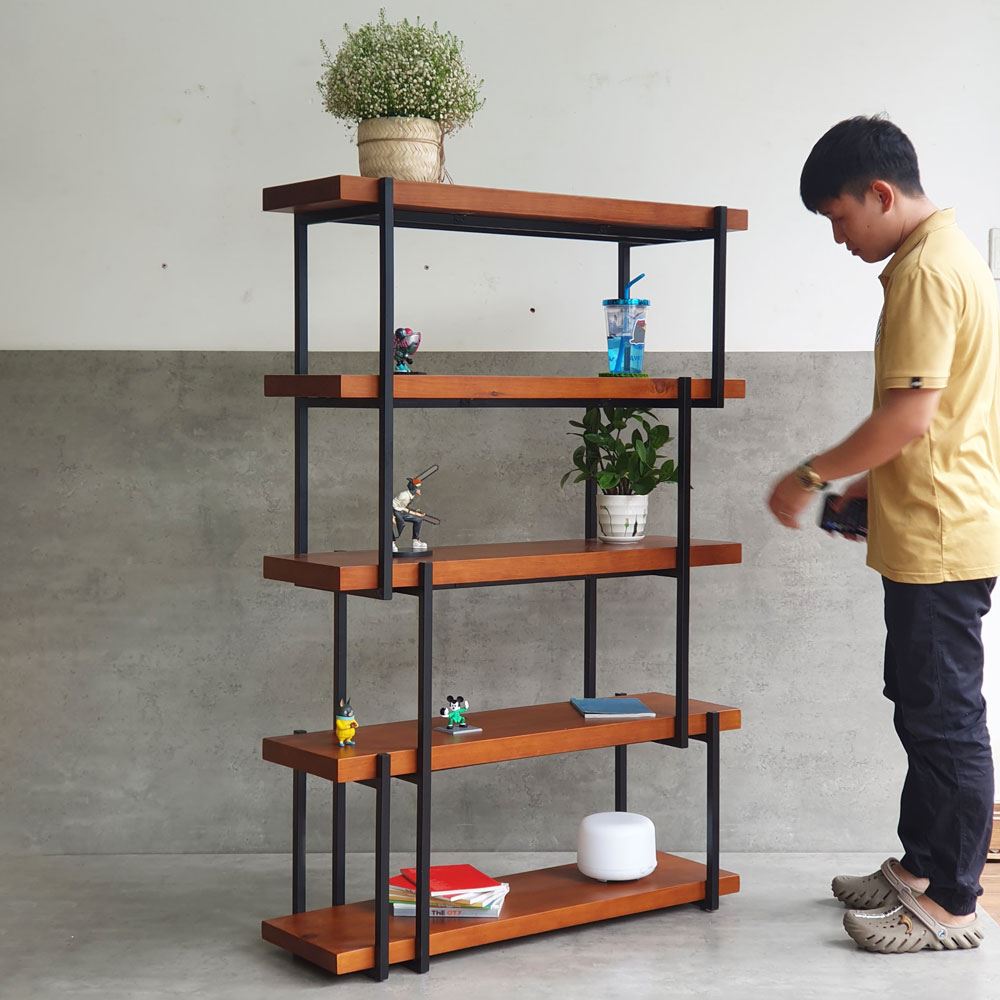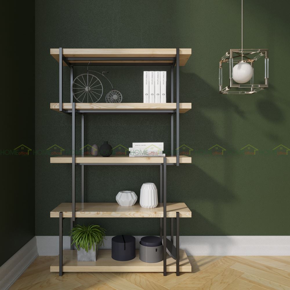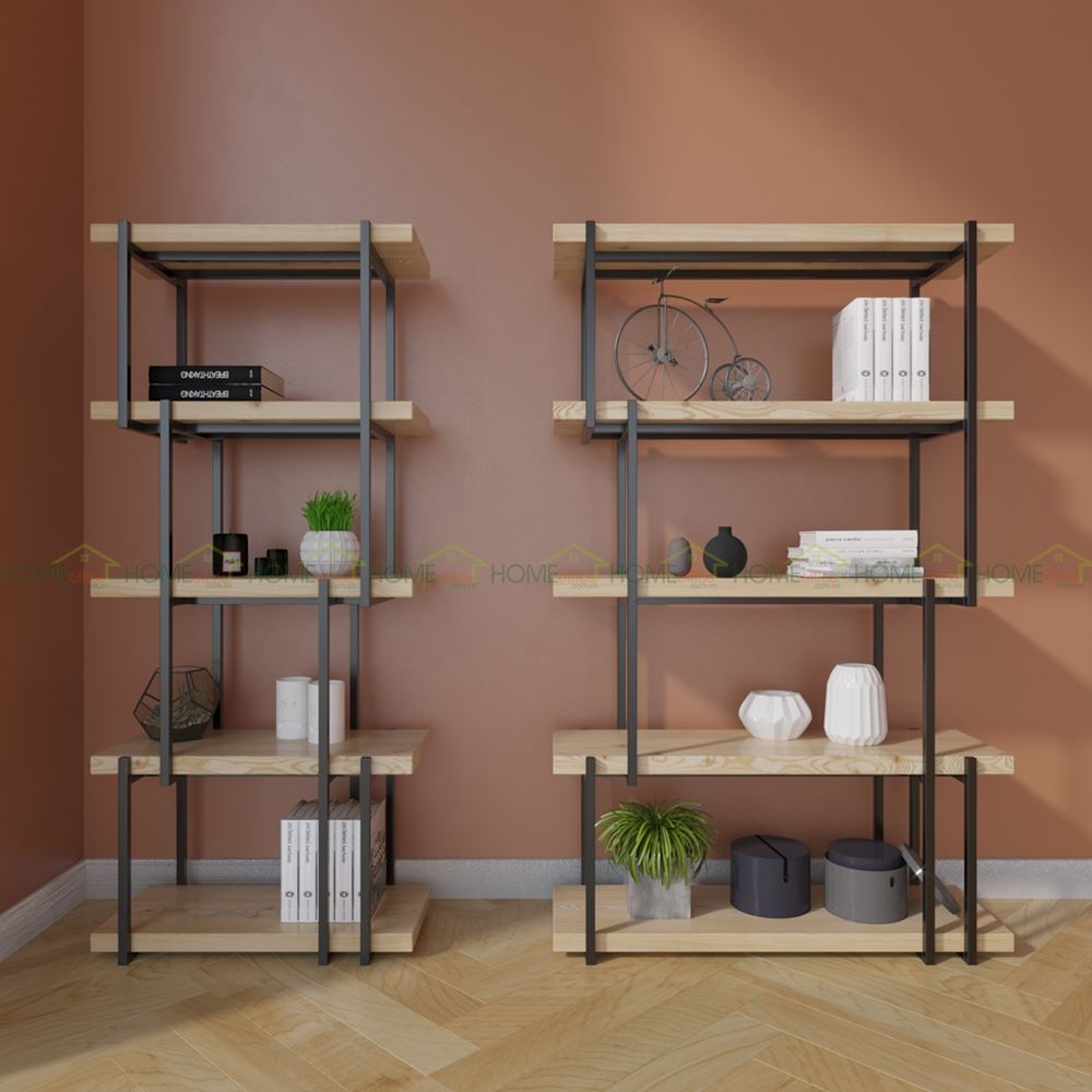 Kệ gỗ khung sắt có khả năng tạo điểm nhấn ấn tượng cho căn phòng