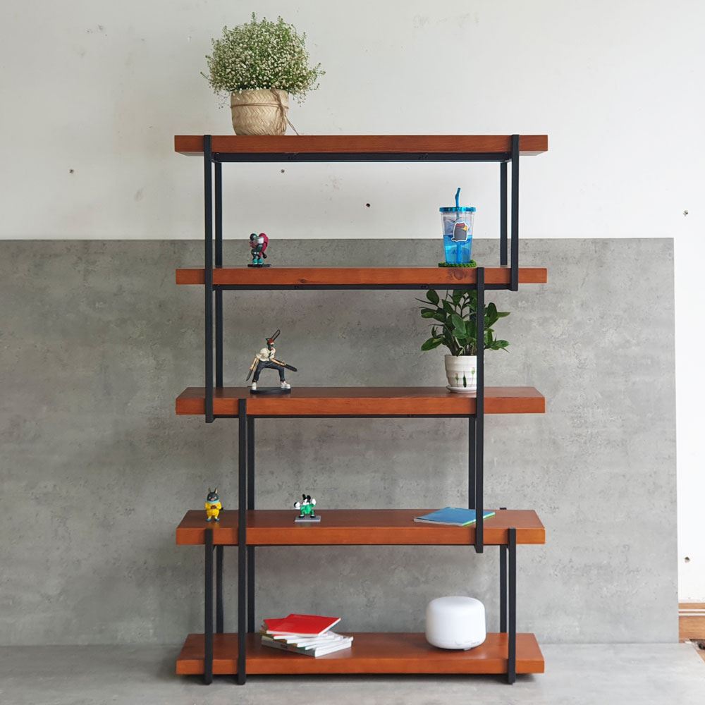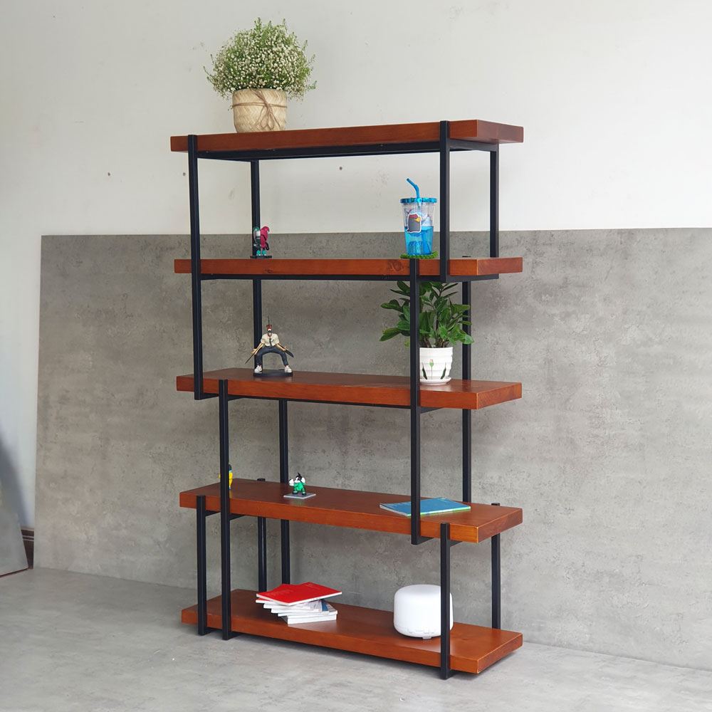 Kệ sách gỗ Thông khung sắt LAM-SHELF KTB68041 với khung sắt hàn cố định rất chắc chắn kết hợp với gỗ thông dày 35-40mm sơn pu hoàn thiện màu sắc tự nhiên của gỗ thông tạo nên sản phẩm rất đẹp mắt với 5 tầng kệ, kích thước chiều ngang 100cm vừa vặn với nhiều không gian, điểm nhấn của sản phẩm chính là ở các tấm gỗ Thông dày dặn rất thân thiện phù hợp với các không gian decor, mẫu kệ dùng làm kệ sách, kệ trang trí hay trưng bày sản phẩm đều được.