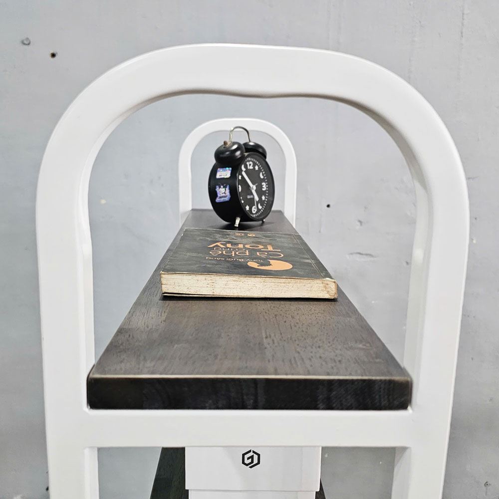 Khung sắt được chế tạo từ thép cao cấp, sơn tĩnh điện chống gỉ sét, đảm bảo độ cứng vững và bền bỉ theo thời gian. Sự kết hợp hoàn hảo giữa gỗ tự nhiên và kim loại không chỉ tạo nên vẻ đẹp hài hòa mà còn đảm bảo chất lượng và tuổi thọ của sản phẩm.