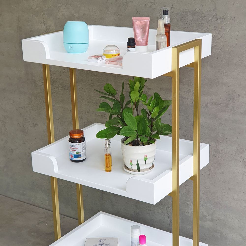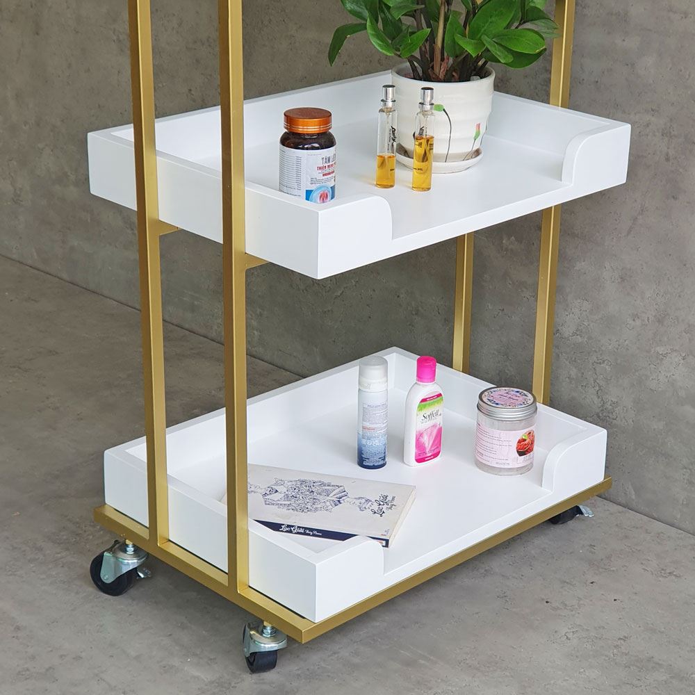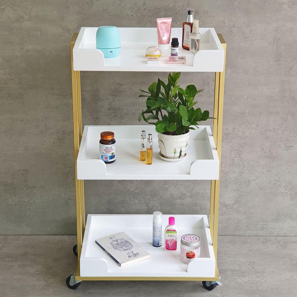 Xe đẩy có 3 tầng kệ có thể sắp xếp và lưu trữ nhiều dụng cụ spa khác nhau