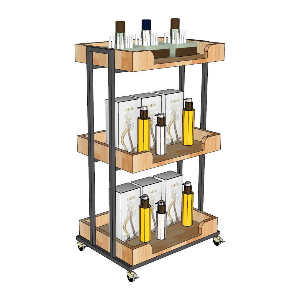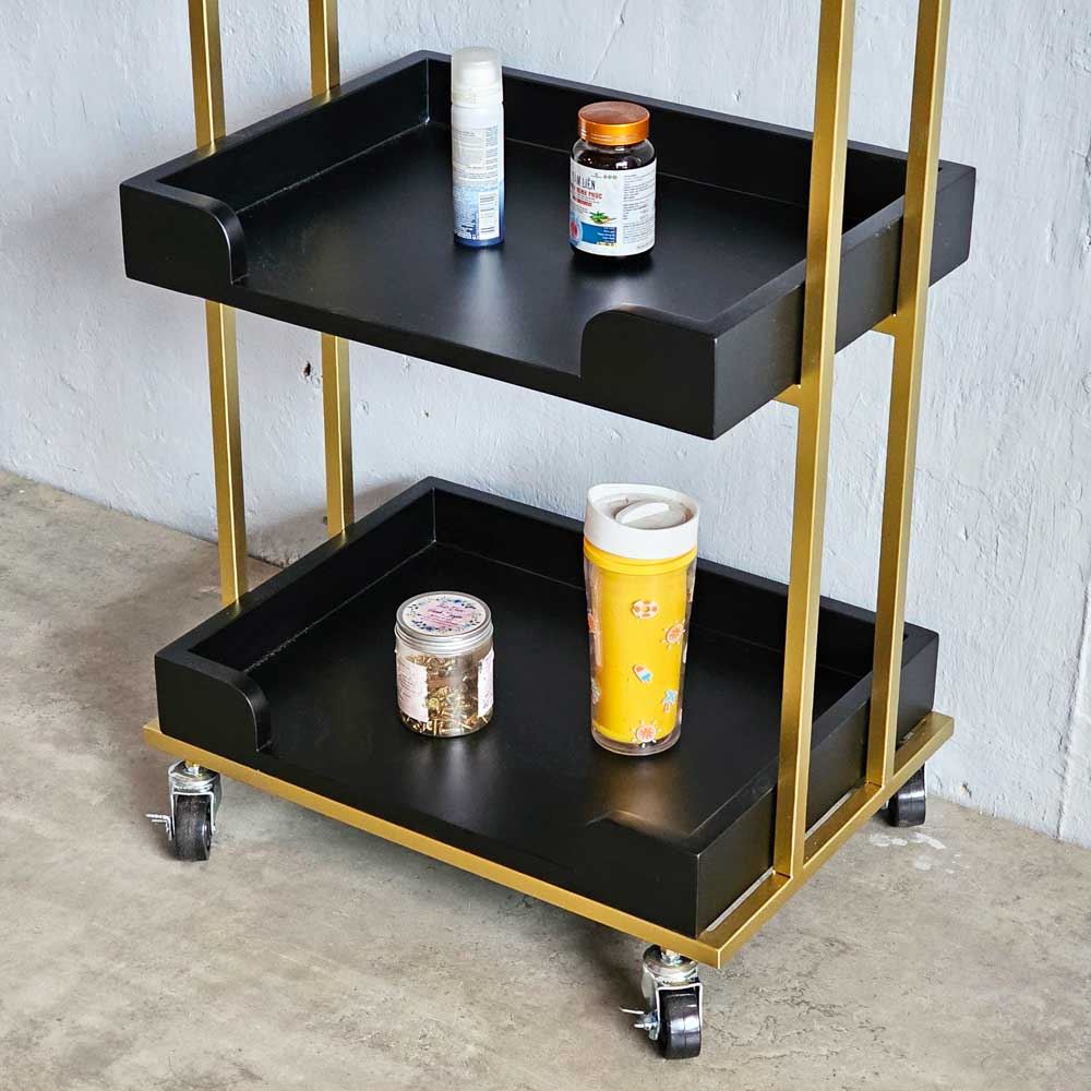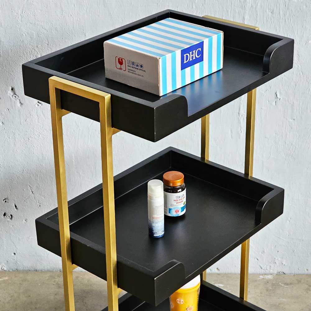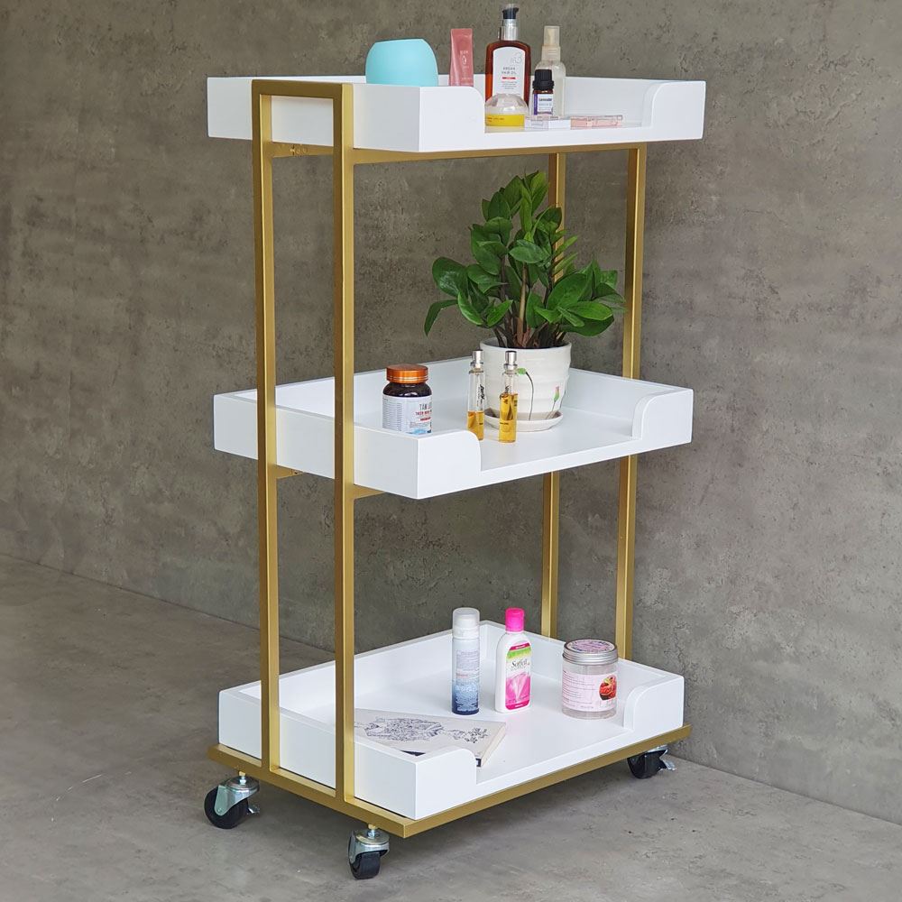 Xe đẩy có 3 tầng kệ có thể sắp xếp và lưu trữ nhiều dụng cụ spa khác nhau