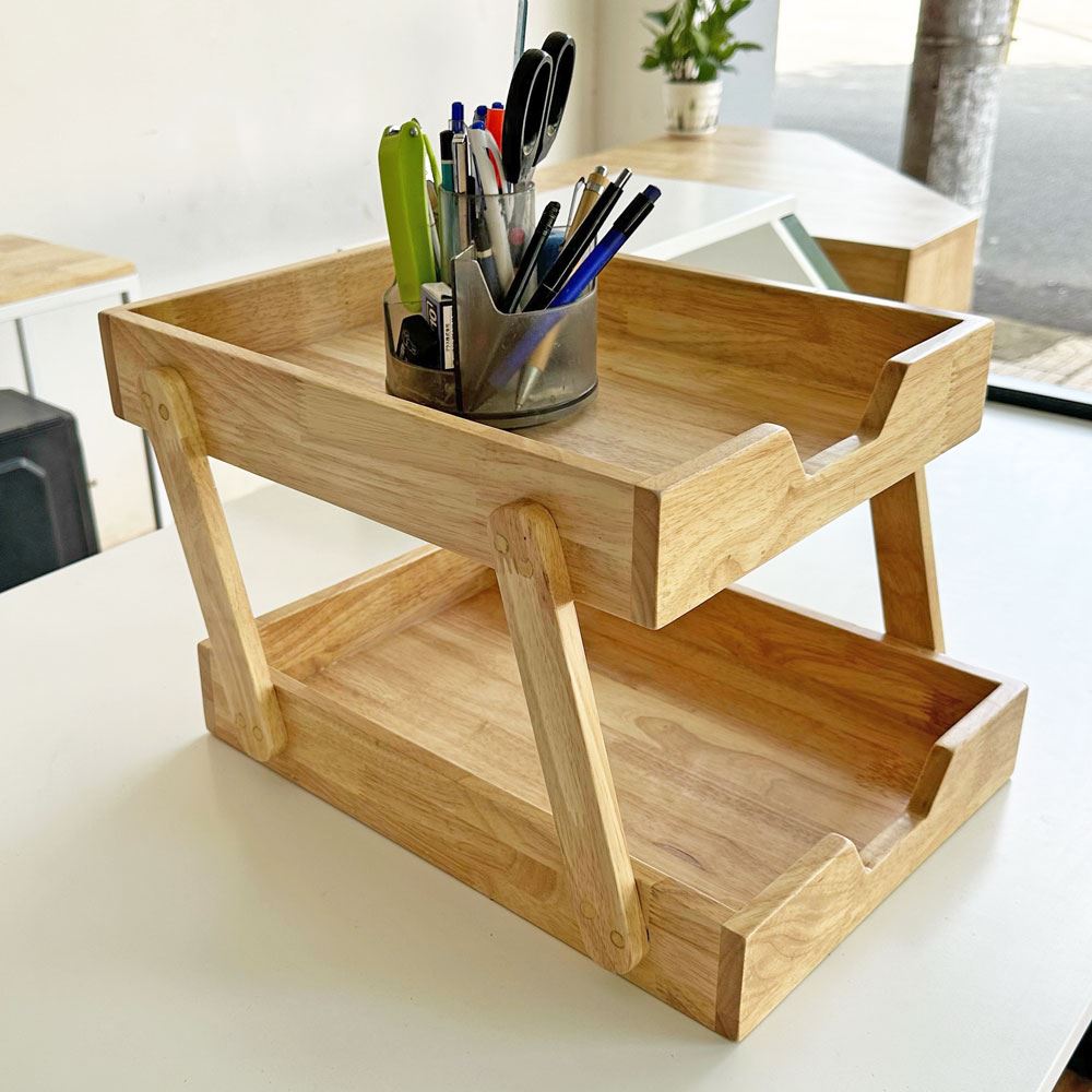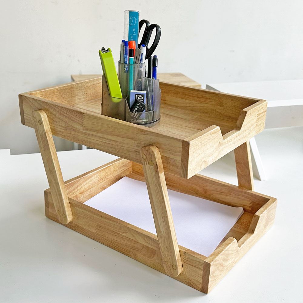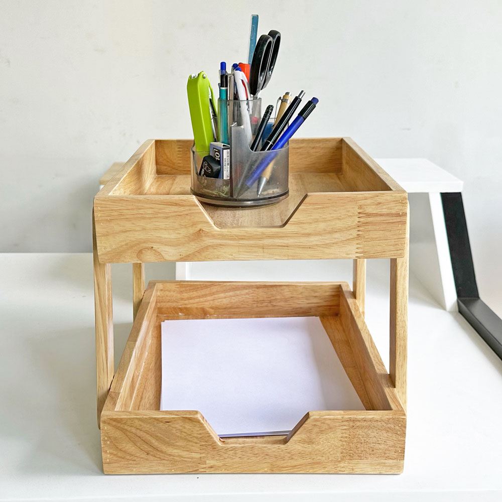 Khay đựng hồ sơ gỗ PKVP001 được thiết kế 2 tâng nhỏ gọn, tiện dụng giúp bạn dễ dàng lưu trữ đồ dùng văn phòng, tài liệu và hồ sơ. Một giản phẩm đơn giản, chắc chắn và bền bỉ giúp tối ưu không gian làm việc, vừa là sản phẩm sáng tạo được làm từ gỗ tự nhiên mang lại nguồn cảm hứng cho bạn.