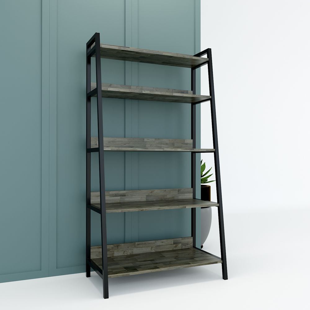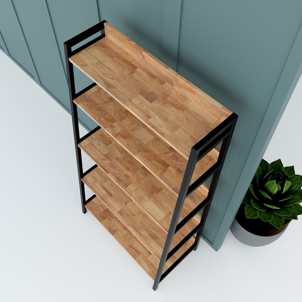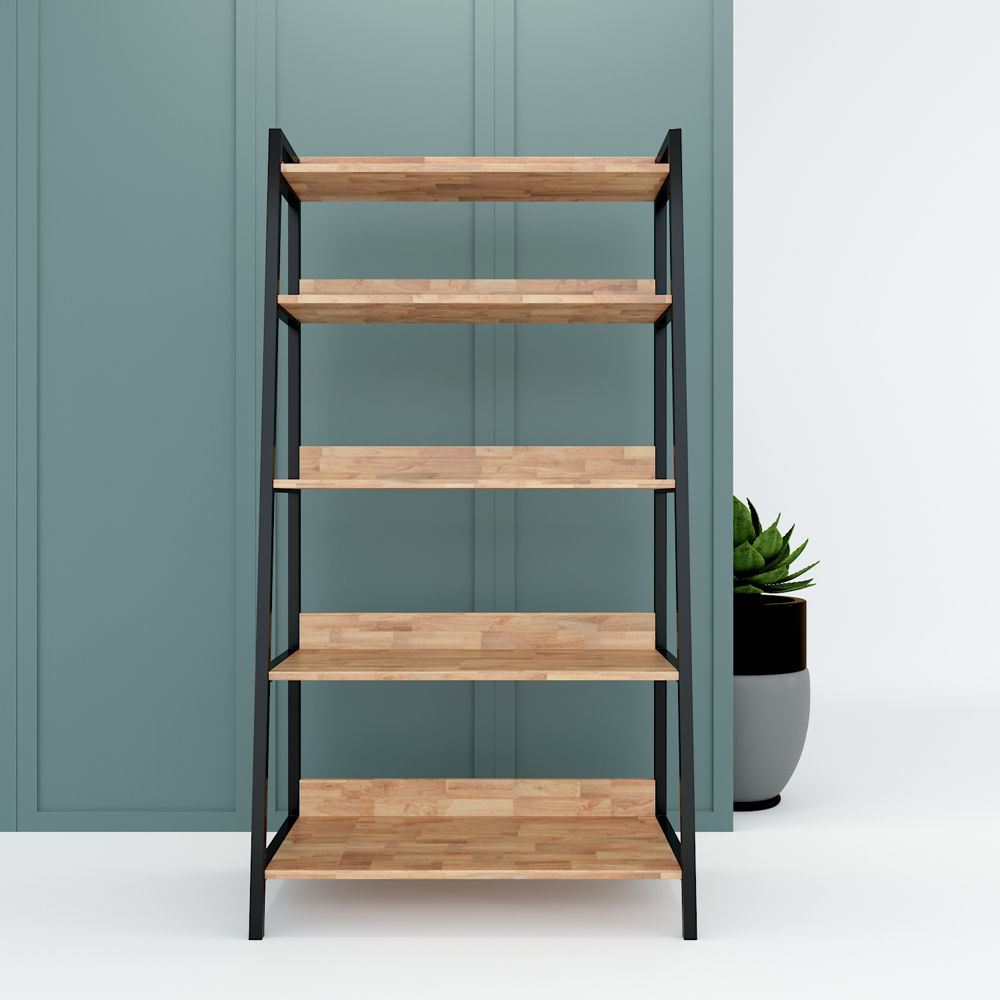 Kệ khung sắt hình thang 5 tầng gỗ cao su (45x85x160cm)
