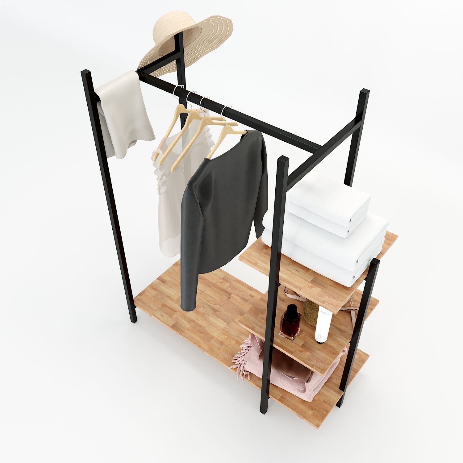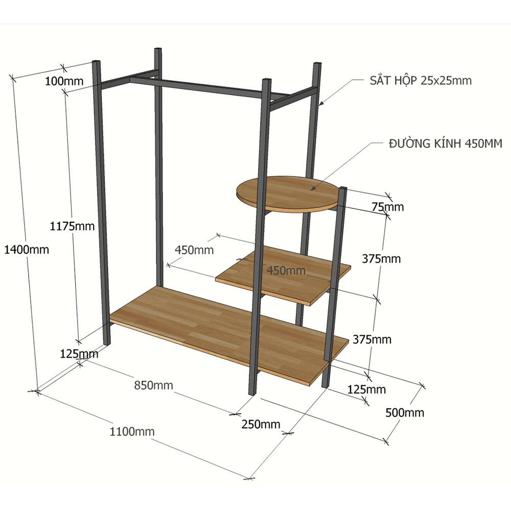 Kệ treo quần áo khung sắt gỗ đẹp mắt phong cách tối giản