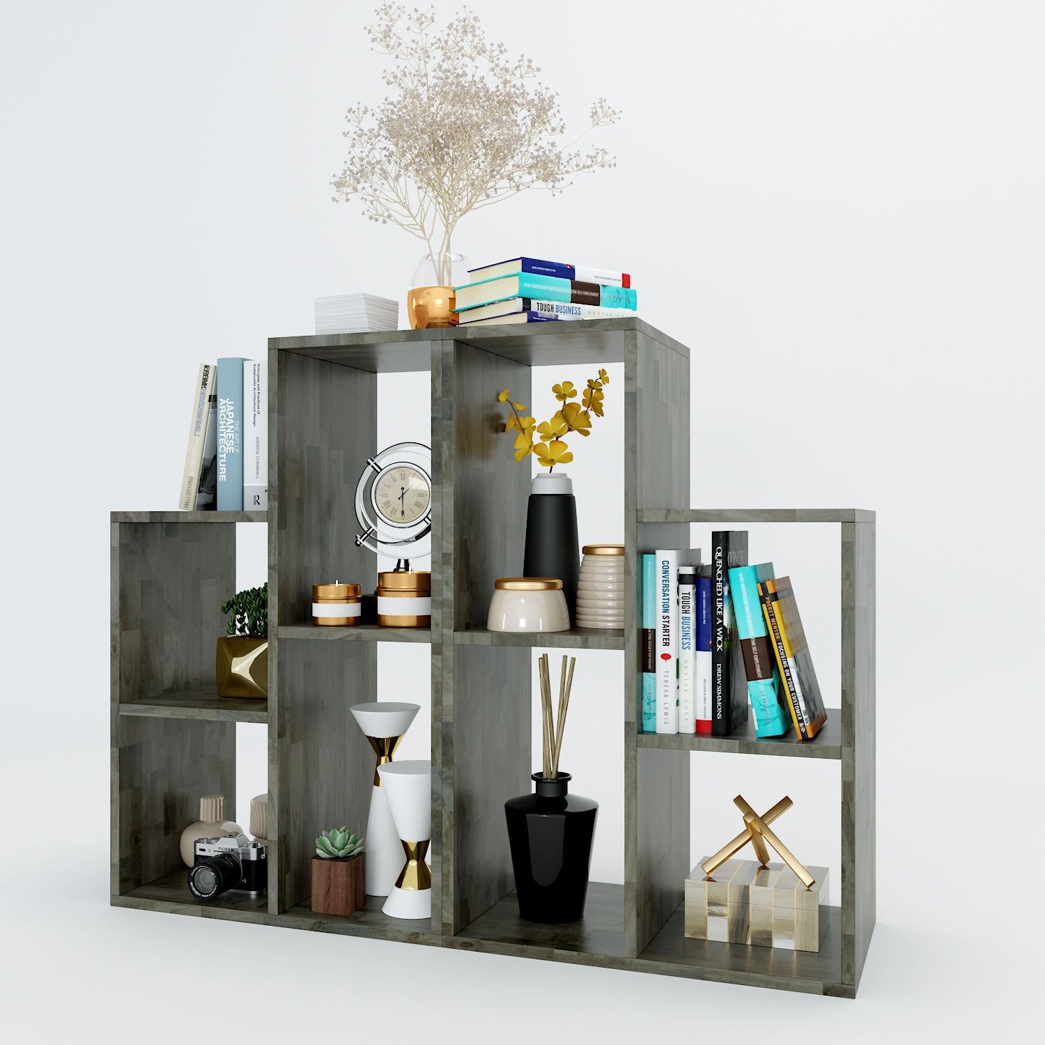 Kệ sách trang trí ROBOT gỗ cao su KS68054 (55x32x145cm) với thiết kế hiện đại gồm hai kệ giống nhau cho ra nhiều cách sắp xếp như ROBOT vậy với chất liệu gỗ cao su tiêu chuẩn AA dày 17mm sơn PU hoàn thiện với kỹ thuật gia công sản xuất tỉ mỉ theo tiêu chuẩn của HOMEOFICC, kích thước đa dạng tùy theo cách sắp xếp theo các hình ảnh mà chúng tôi đã mô tả dưới đây.