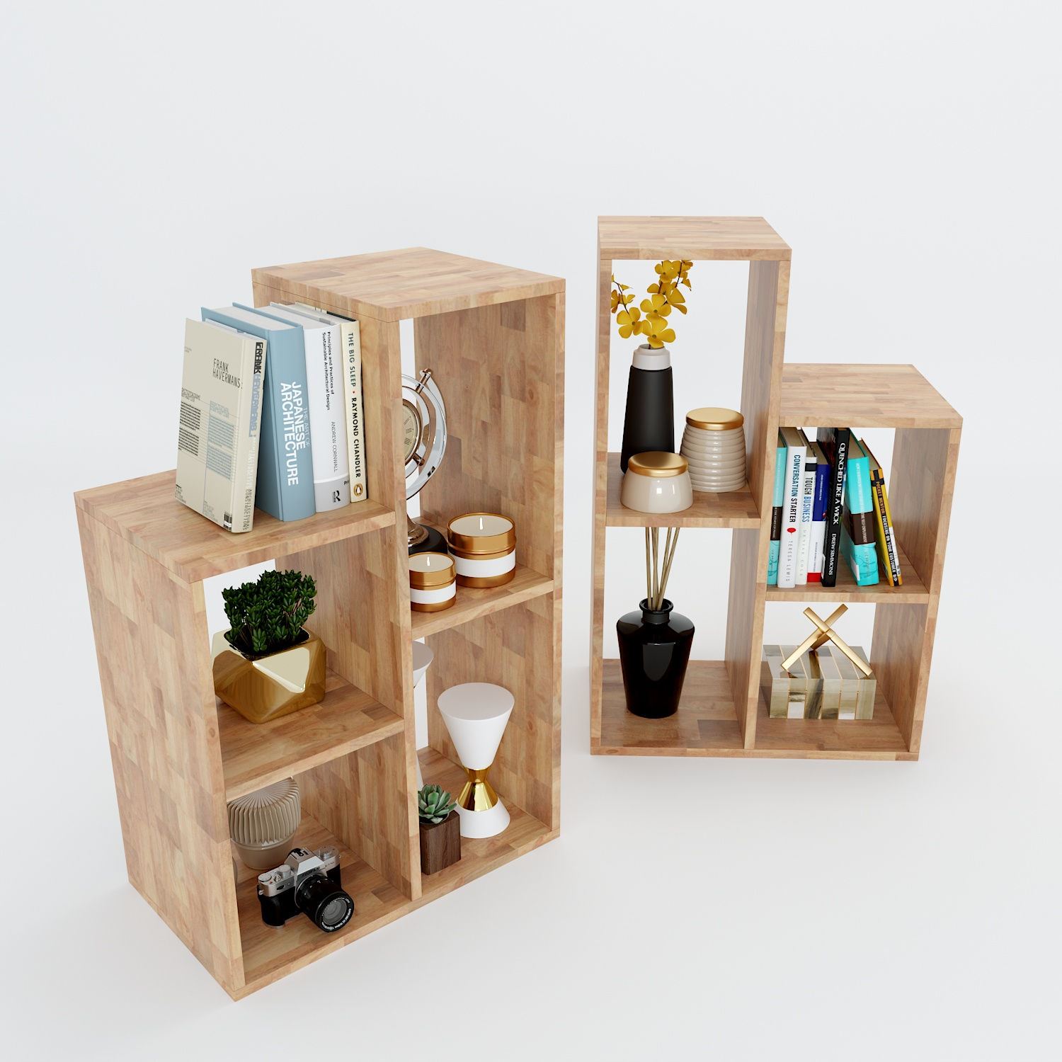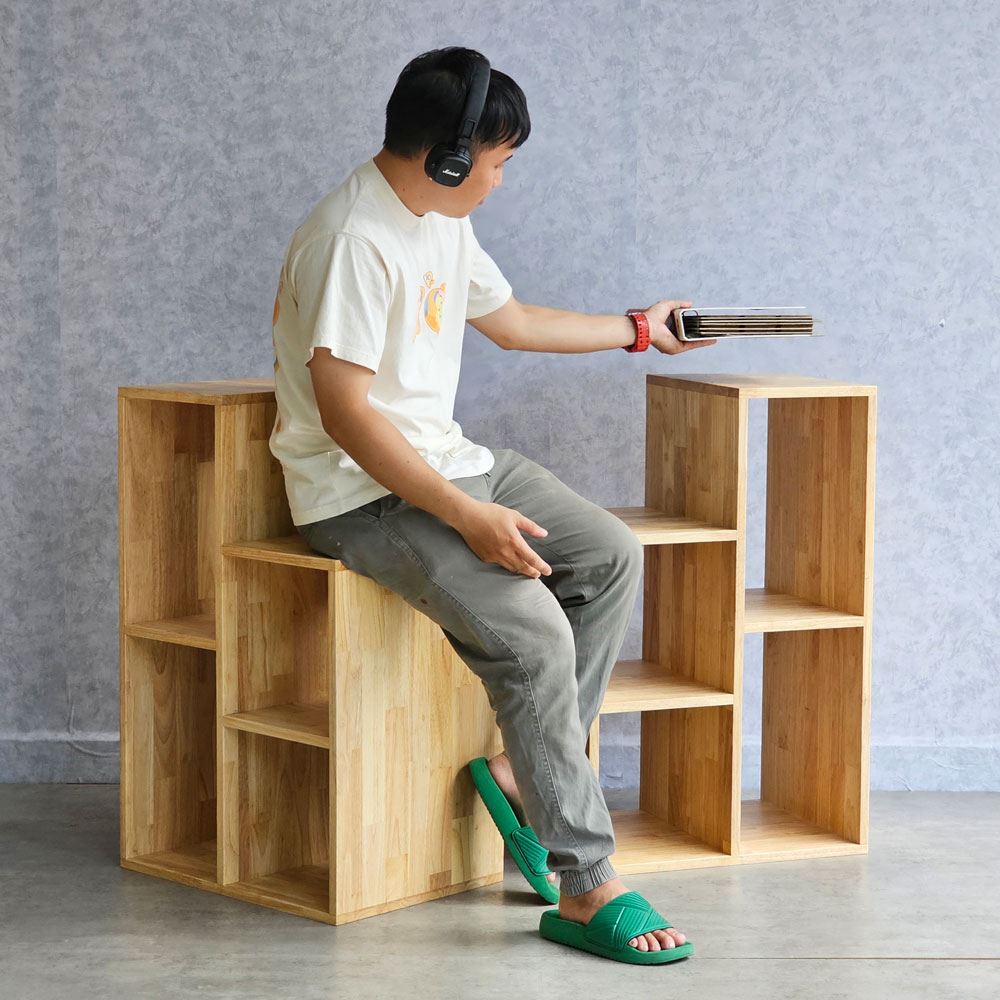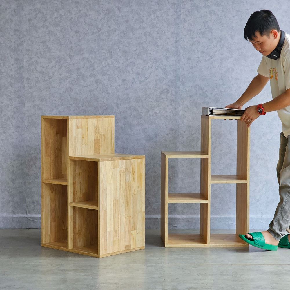 Kệ sách trang trí ROBOT gỗ cao su cách xếp rời