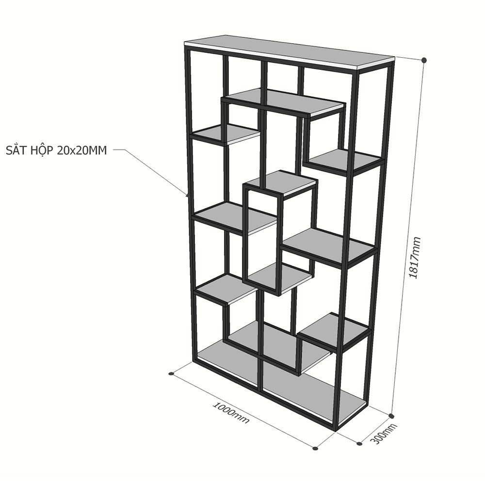 Kích thước chi tiết của sản phẩm kệ sách, kệ trang trí KS68062