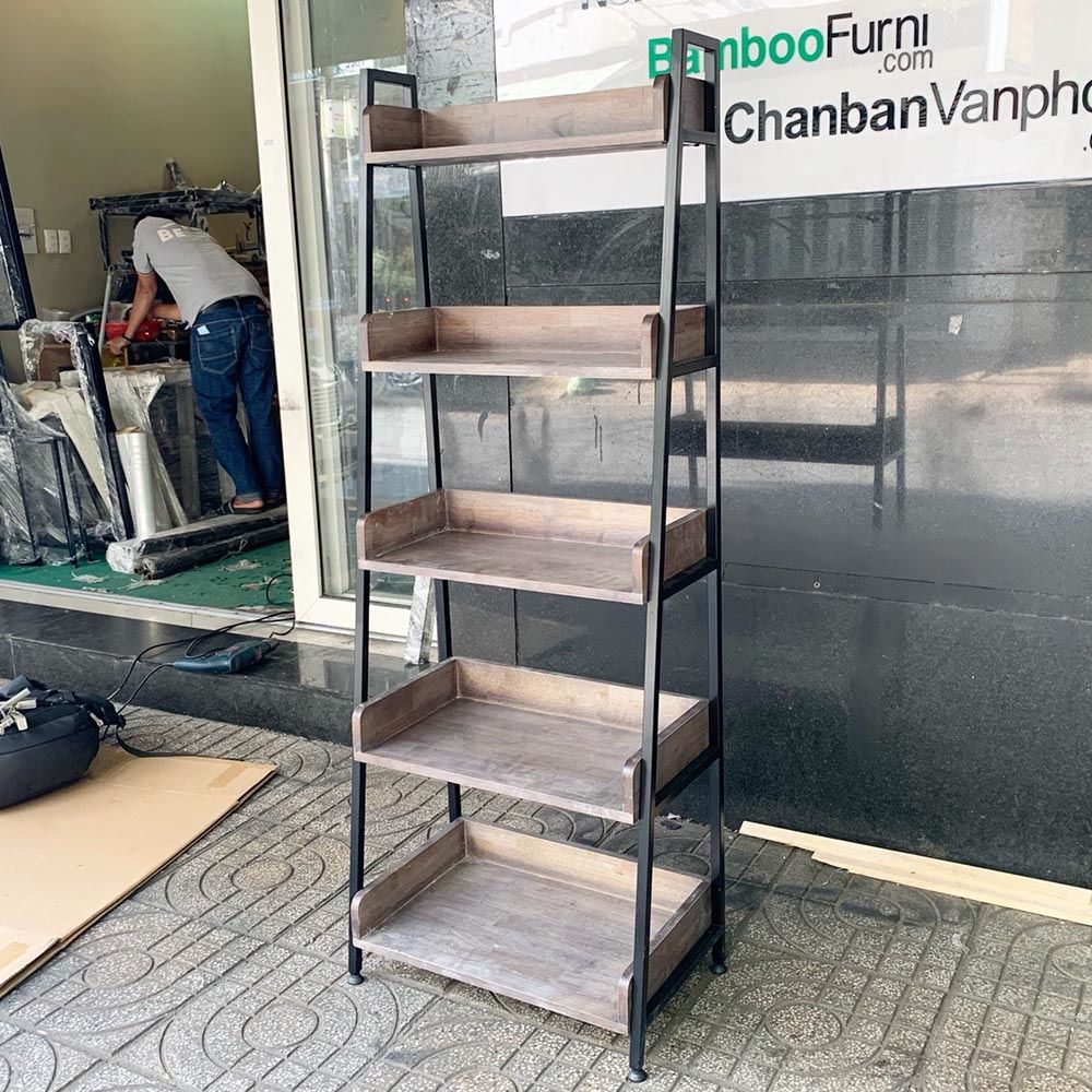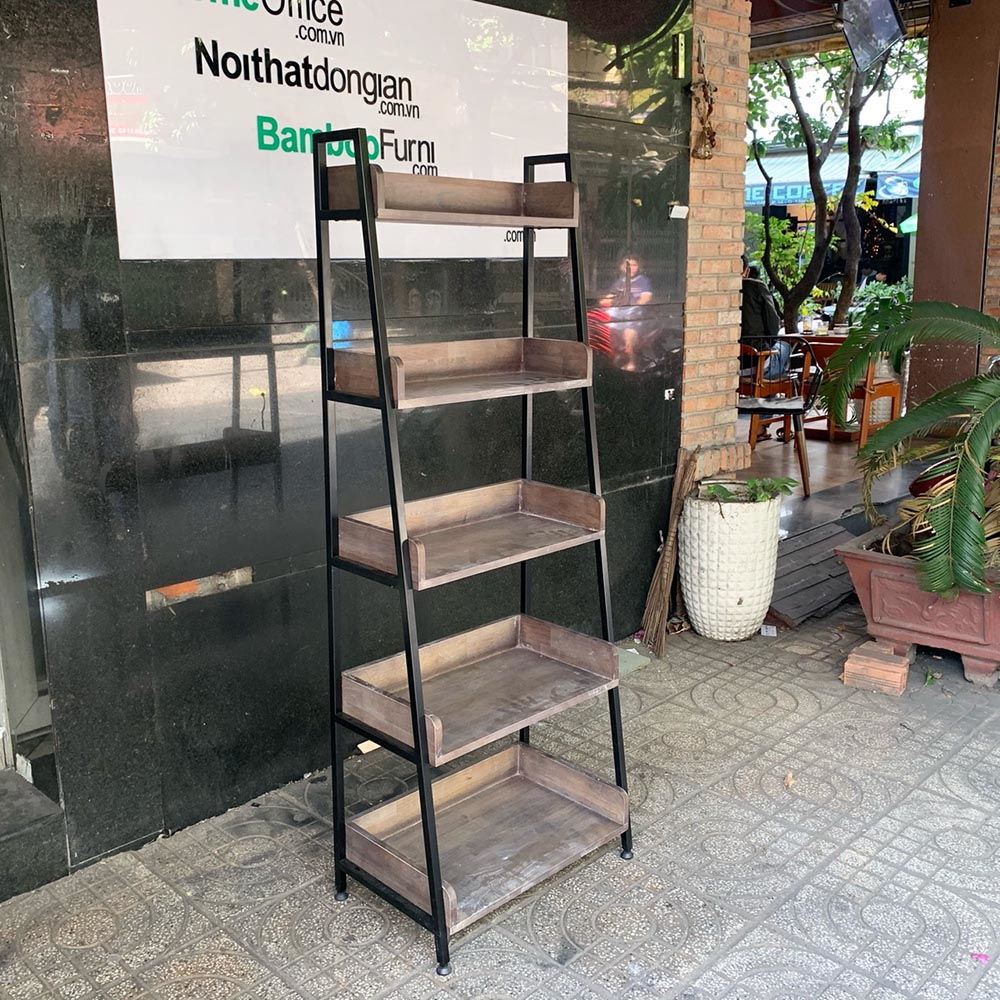 Kệ trang trí CASAN 5 tầng gỗ kết hợp khung sắt 60x36x160(cm)