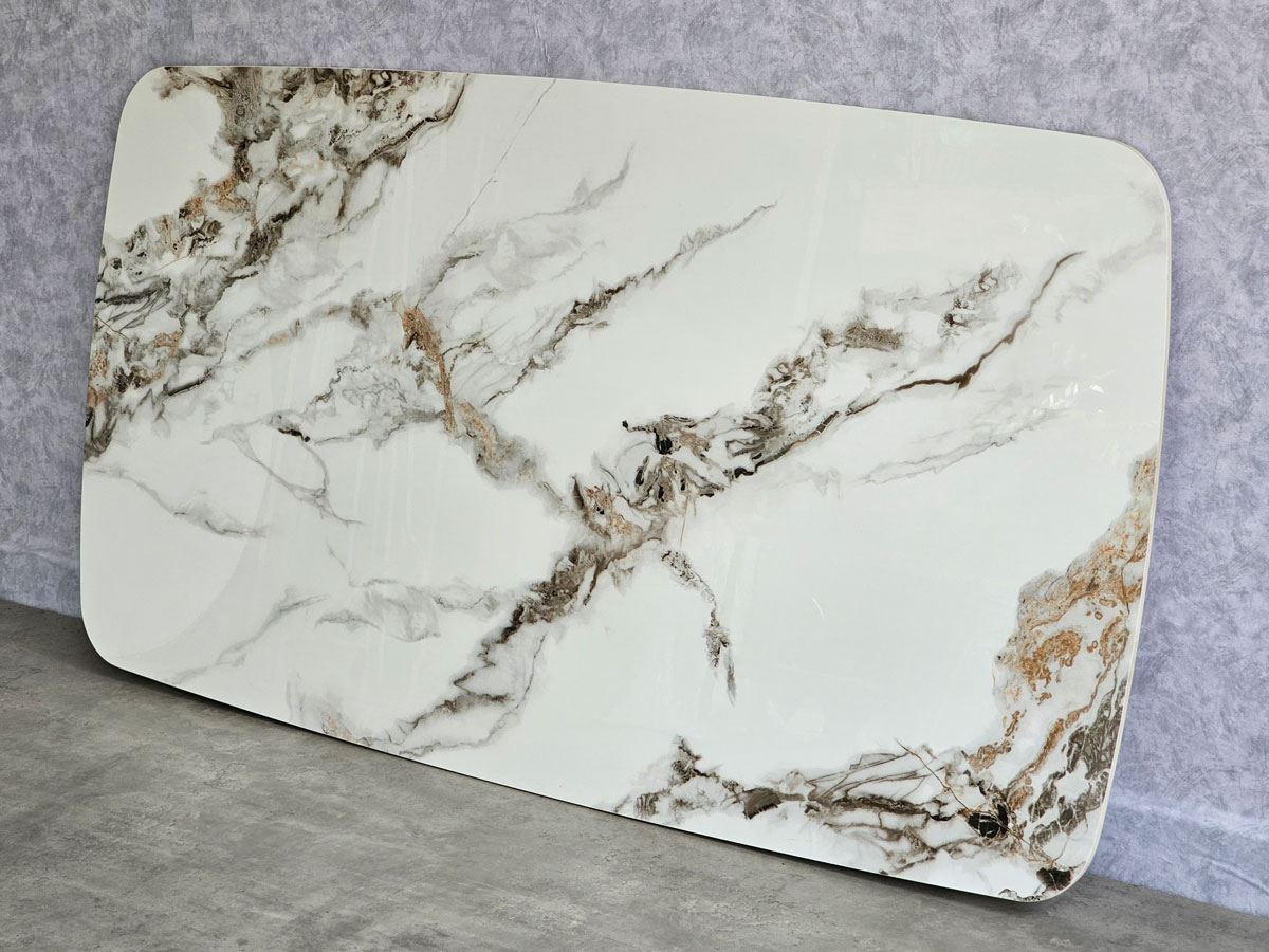 Mặt bàn ăn MB042 được làm bằng đá ceramic, là một loại vật liệu cao cấp được sản xuất bằng cách chế tạo từ đất sét hoặc các nguyên liệu khoáng chất khác, sau đó đốt nung ở nhiệt độ cao để tạo ra một vật liệu cứng và không thấm nước. Đá ceramic có nhiều đặc điểm thuận lợi, bao gồm độ bền cao, khả năng chịu nhiệt tốt, kháng hóa chất, không bị ảnh hưởng bởi ánh sáng mặt trời hoặc màu sắc, và dễ dàng làm sạch. Nó cũng có thể có nhiều màu sắc, hoa văn và kích thước khác nhau, cho phép nó được sử dụng trong nhiều ứng dụng khác nhau.