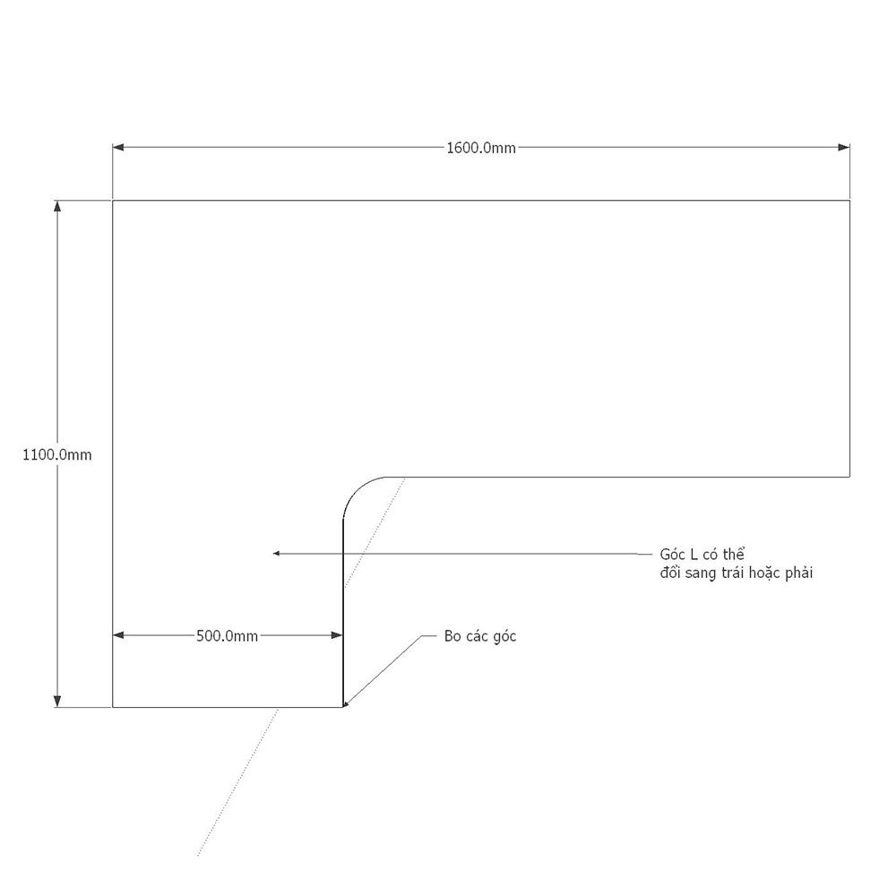 Mặt bàn góc L 160x110cm gỗ cao su màu trắng