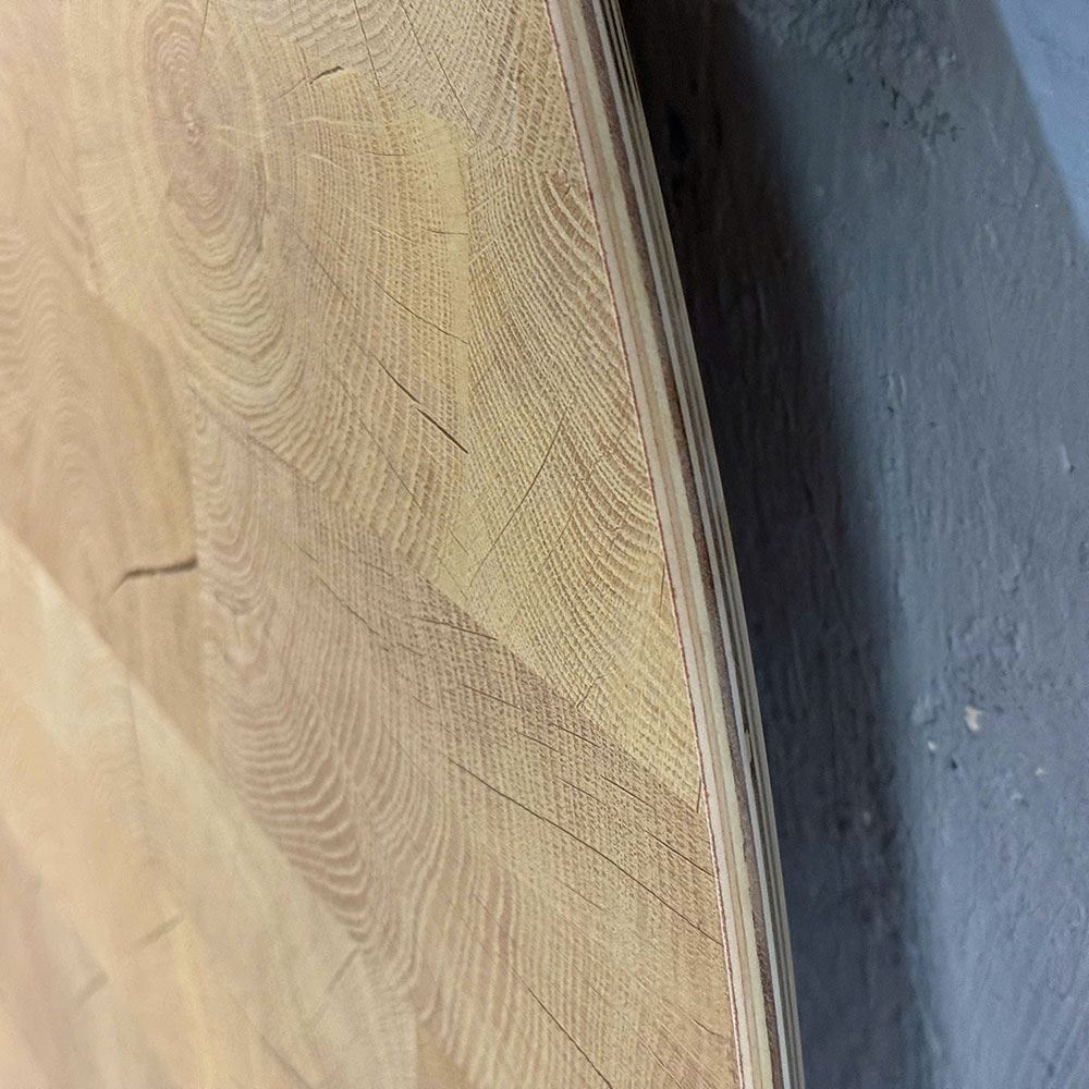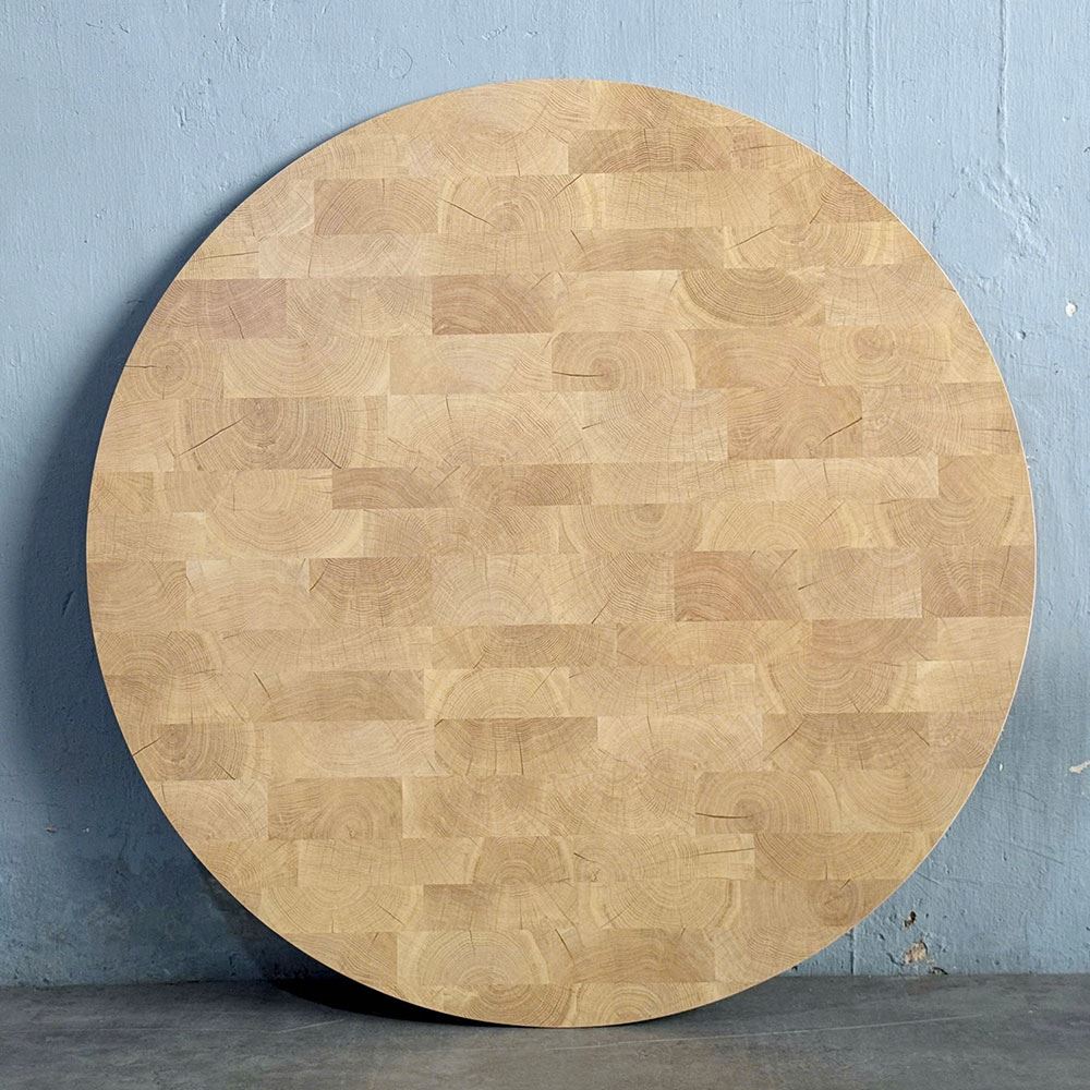 Mặt bàn tròn đường kính 120cm gỗ Plywood vân Cut Trunk - MB053 với cạnh bàn được chạy khuyết mặt dưới tạo đường cong rất đẹp. Cạnh Plywood được chà nhám và sơn Pu hoàn thiện rất đẹp.