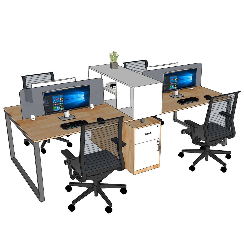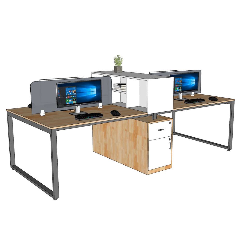 Bàn cụm 4 người HBRT074 có kiểu dáng thiết kế đơn giản, tiện dụng và khoa học, phù hợp với các không gian văn phòng có diện tích lớn. Với hệ tủ kệ được tích hợp giúp tận dụng khoảng không gian dưới gầm bàn, mở rộng thêm không gian lưu trữ hồ sơ, tài liệu văn phòng. Kiểu bàn gân gác tủ cũng giúp tăng thêm tính thẩm mỹ cho không gian nội thất văn phòng. Với hệ chân bàn sắt lắp ráp 25x50cm vừa đảm bảo sự chắc chắn vừa đem lại tính thẩm mỹ cao. Hệ bàn cụm 4 người HBRT074 sẽ là sự lựa chọn phù hợp cho các không gian cần sự tiện lợi và hiện đại.