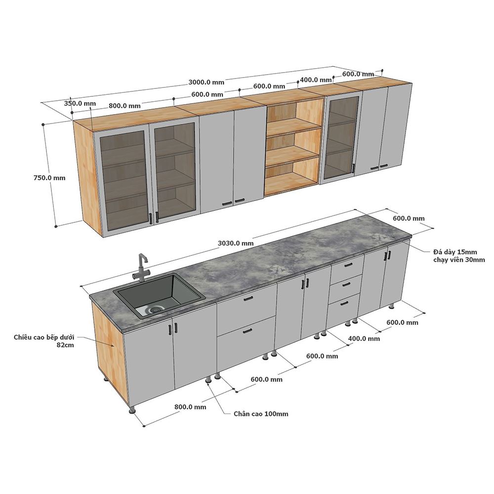 Module tủ bếp 3m gỗ tự nhiên chống ẩm BTB68018 thuộc dòng sản phẩm nhà bếp được thiết kế và sản xuất bởi Nội Thất Homeoffice, mỗi một sản phẩm được chúng tôi nghiên cứu và hoàn thiện sao cho thuận tiện nhất với người dùng. Hệ tủ bếp BTB68018 có chất liệu xung quanh tủ được làm từ gỗ cao su AA tiêu chuẩn xuất khẩu, đã qua xử lý chống cong vênh, chống thấm nước. Cửa tủ được làm từ gỗ MDF chống ẩm. Thiết kế với kiểu dáng thông minh với các ngăn tủ được sắp xếp hợp lý tạo ra sự thuận tiện khi sử dụng cũng như là mang lại nguồn cảm hứng cho người nội trợ.