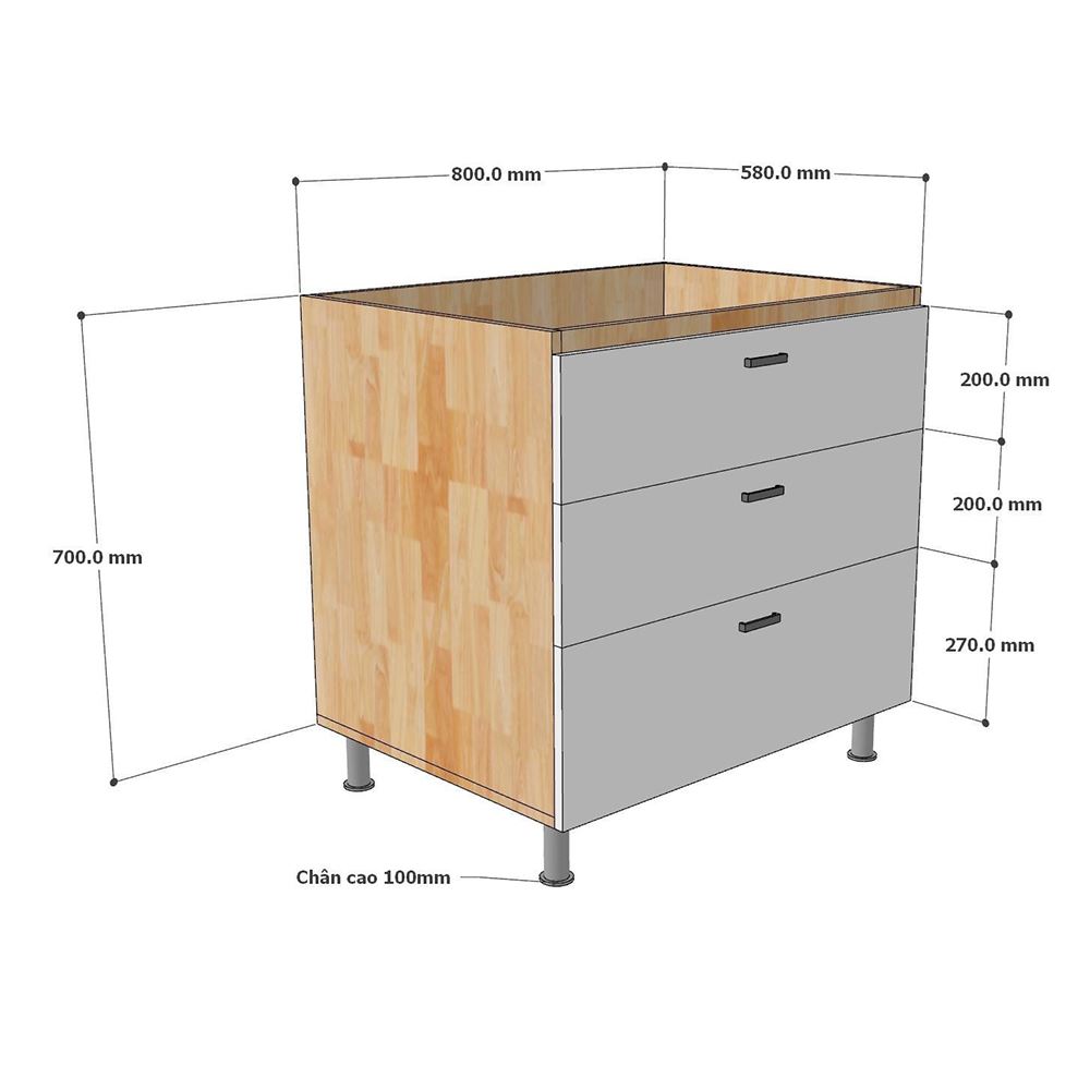 Module tủ bếp dưới 80cm hệ 3 ngăn kéo MTBD014 là sản phẩm thuộc hệ tủ bếp dưới được thiết kế có 3 ngăn kéo giúp tăng khả năng lưu trữ vật dụng một cách tối đa. Tủ bếp dưới MTBD014 có chất liệu bao quanh được làm từ gỗ cao su AA tiêu chuẩn xuất khẩu, đã qua xử lý chống cong vênh, chống thấm nước. Cửa tủ được làm từ gỗ MDF chống ẩm, chống thấm nước. Những tủ bếp đơn của Homeoffice được thiết kế với chiều cao tiêu chuẩn có thể dễ dàng kết hợp với các mẫu tủ, kệ bếp khác tạo thành các hệ kệ tủ bếp theo sở thích và nhu cầu của bạn.