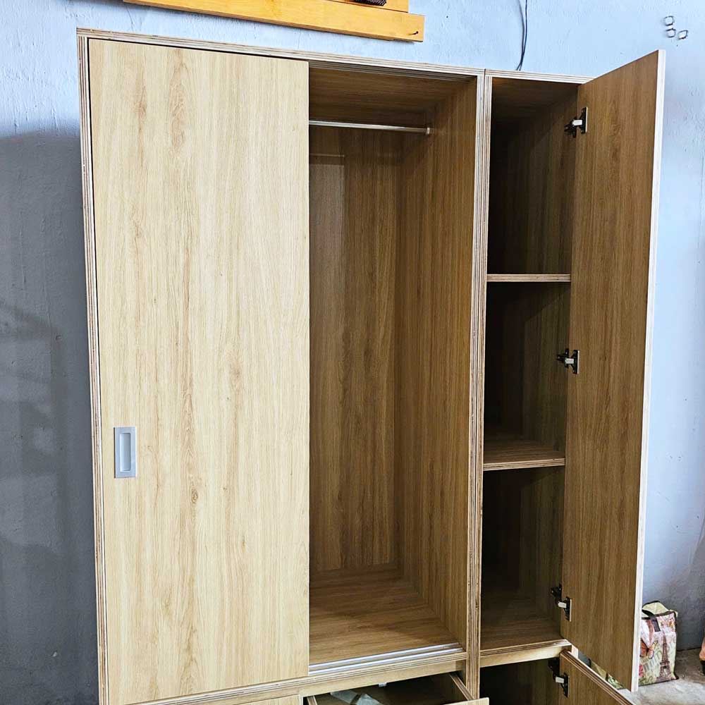 Tủ quần áo TQA68052 là sự kết hợp hoàn hảo giữa tính thẩm mỹ và công năng. Được chế tác từ ván gỗ plywood cao cấp, phủ lớp melamin vân gỗ tinh tế, tủ không chỉ mang đến vẻ đẹp tự nhiên mà còn đảm bảo độ bền vượt thời gian. Thiết kế cửa lùa thông minh giúp tiết kiệm diện tích đáng kể, đồng thời tạo nên sự gọn gàng, ngăn nắp cho không gian phòng ngủ.