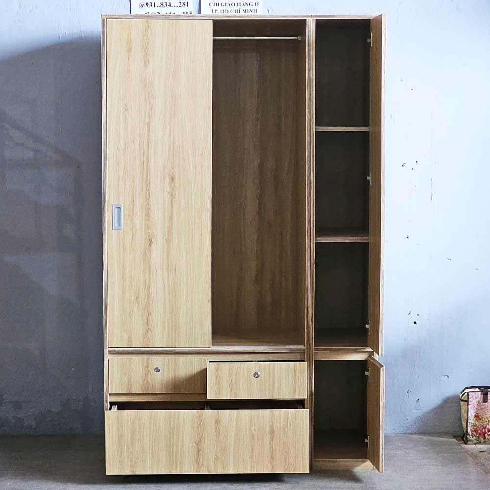 Với hệ thống ngăn kéo đa dạng, bao gồm 2 ngăn kéo nhỏ tiện lợi và 1 ngăn kéo lớn chia thành 2 ngăn độc lập, tủ đáp ứng nhu cầu lưu trữ đa dạng của người dùng. Đặc biệt, lớp phủ melamin chống thấm giúp bảo vệ tủ khỏi ẩm mốc, đảm bảo tuổi thọ sản phẩm. Kiểu dáng tối giản nhưng không kém phần tinh tế, tủ quần áo này chắc chắn sẽ là điểm nhấn ấn tượng cho mọi không gian sống.