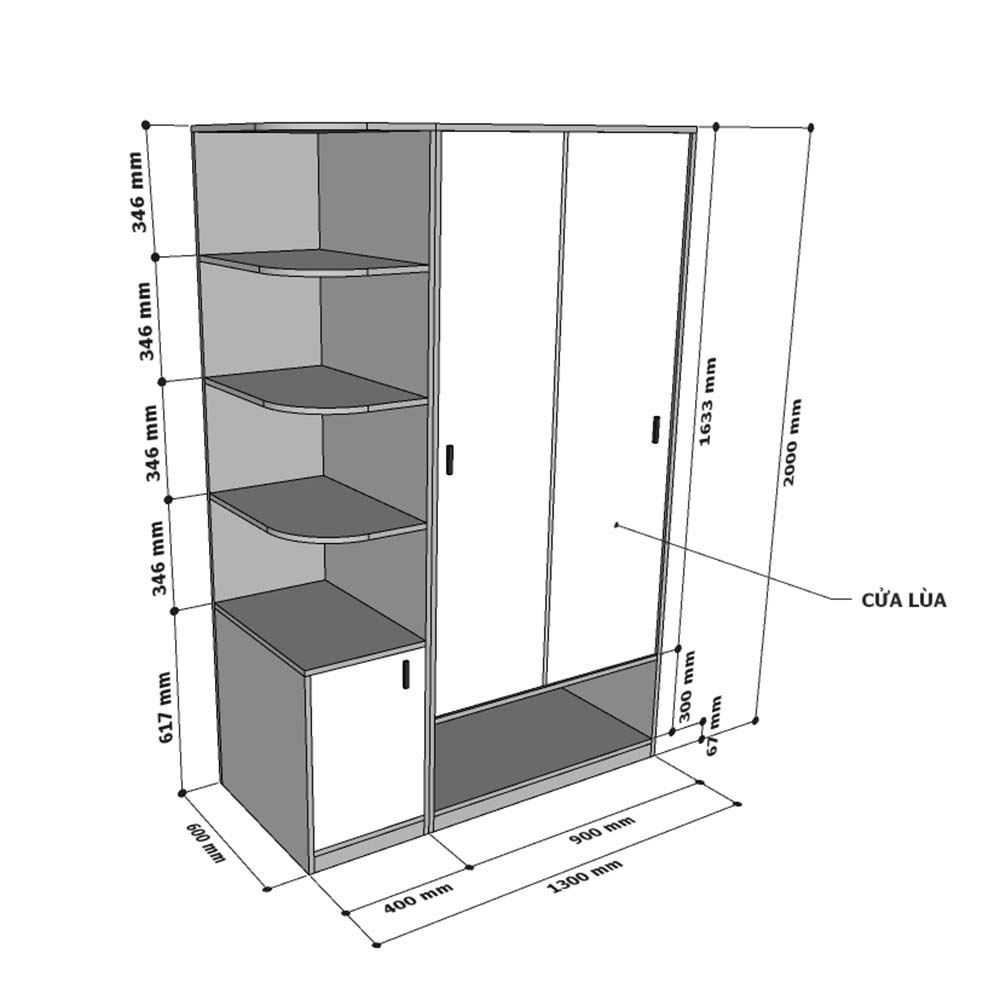 Kích thước module tủ quần áo kết hợp kệ trang trí TQA68038