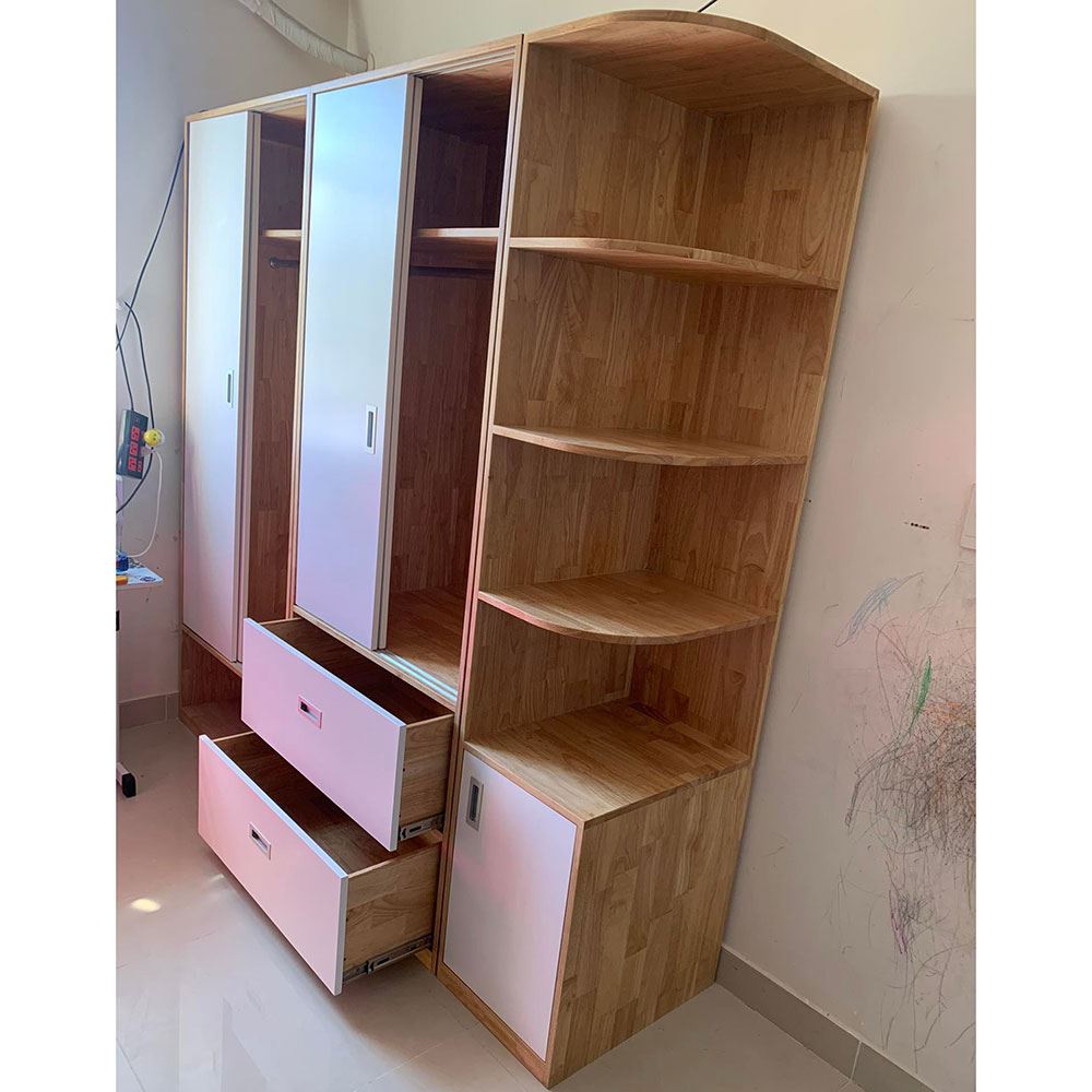 - Chất liệu: Gỗ cao su tiêu chuẩn AA dày 17mm sơn PU - Kích thước (D x R x C): 40x55x200(cm) - Màu sắc : Gỗ màu tự nhiên, cửa chạy viền sơn trắng | ![]() | 3,300,000đ |