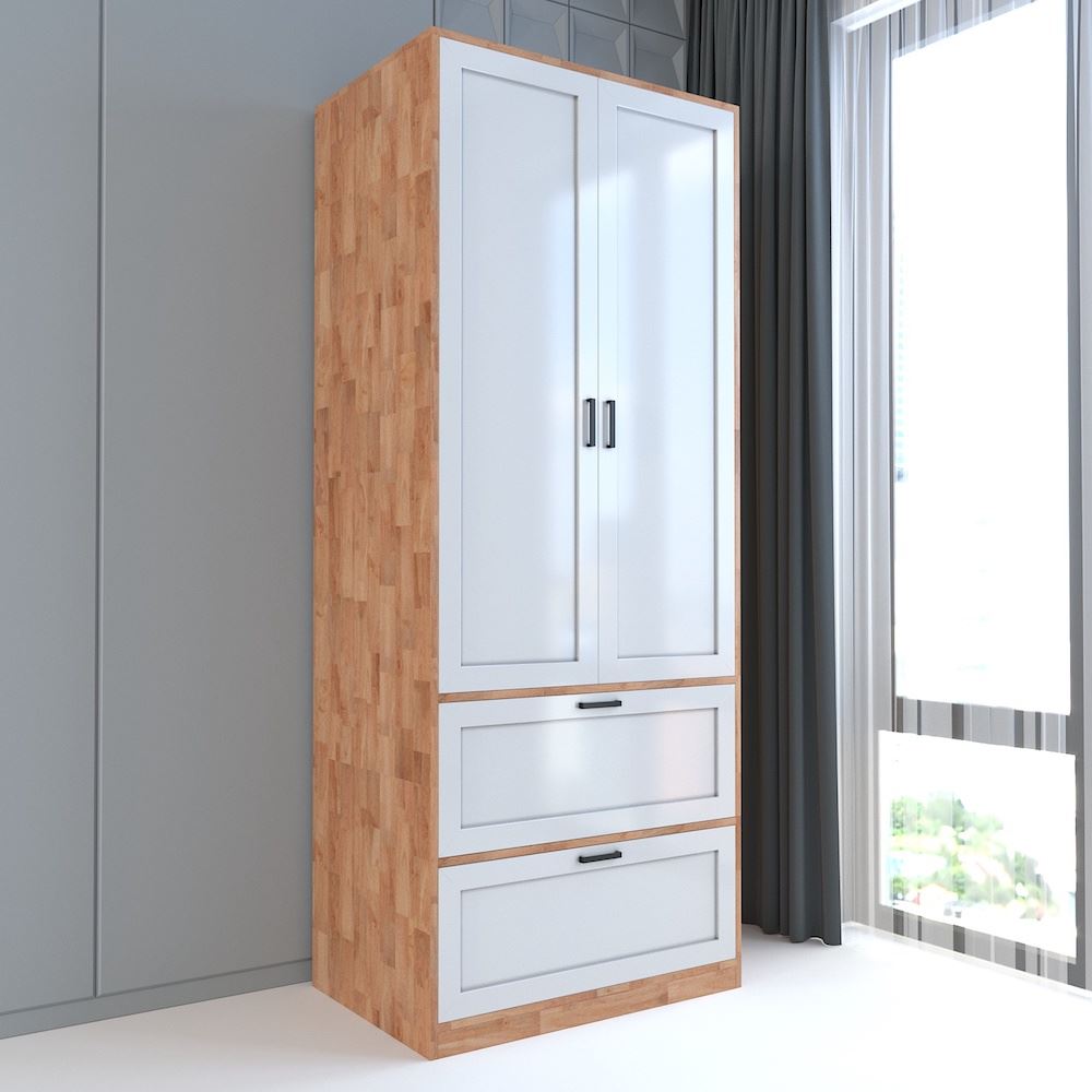 - 1 Tủ Quần Áo : Tủ quần áo hiện đại 2 ngăn kéo gỗ cao su TQA68020