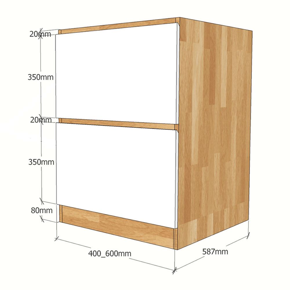 Kích thước chi tiết module tủ bếp dưới 2 ngăn kéo MTBD008