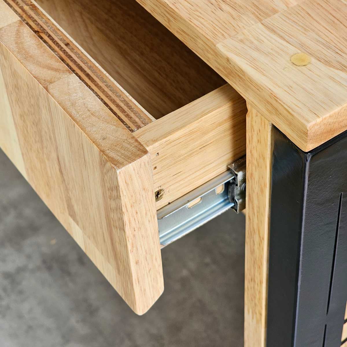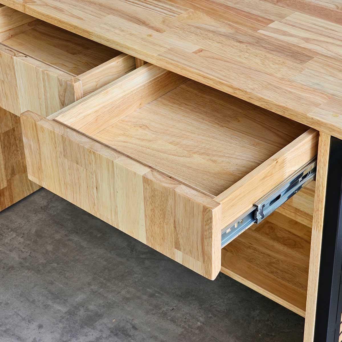 Quầy có 3 ngăn kéo phía trên với thiết kế vát cạnh tinh tế để mở ngăn kéo, thay thế cho tay nắm thông thường