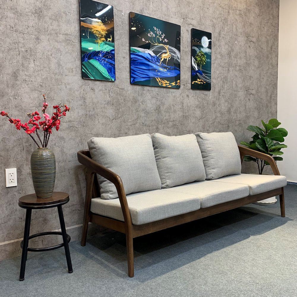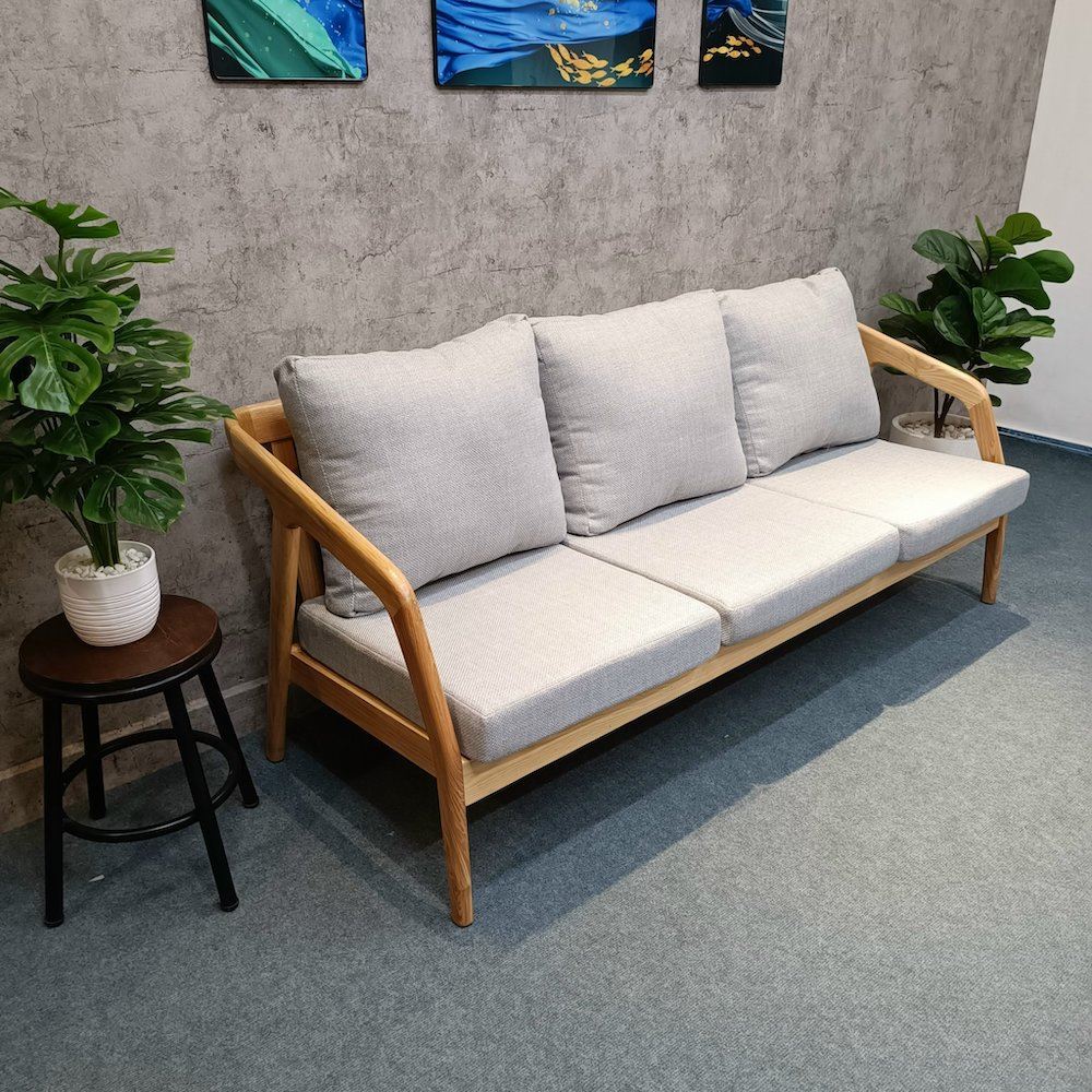 Sofa 3 chỗ ngồi khung gỗ nệm vải SFB68064 với phần khung ghế được làm từ gỗ màu tự nhiên toát lên vẻ đẹp trang nhã, tinh tế có thể sử dụng trong nhiều không gian khác nhau như là sofa cho phòng khách, phòng đọc sách trong gia đình, hay là chiếc ghế sảnh chờ, không gian quán cafe, nhà hàng...