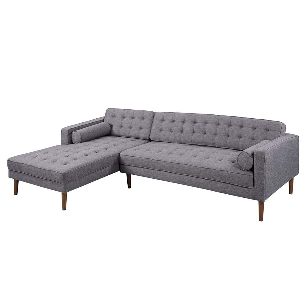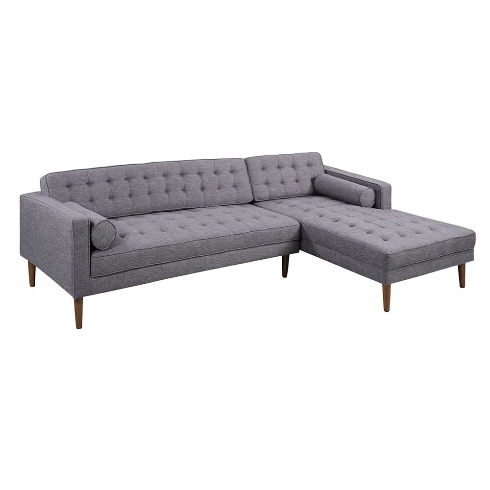 Sofa góc L 260x82cm nệm bọc vải chân gỗ SFL68022 được ưa chuộng sử dụng bởi kiểu dáng đơn giản, nệm bọc vải màu xám trung tính dễ dàng phối hợp với các không gian và các món đồ nội thất khác. Phần lưng và nệm ghế được giật nút được gia công cầu kỳ tạo điểm nhấn cho sản phẩm. Khung chân gỗ đã được qua xử lý có độ bền cao và khả năng chịu lực tốt. Ngoài vải bọc màu xám, bạn có thể lựa chọn màu sắc theo bảng màu của chúng tôi để có được màu ghế phù hợp với không gian hay theo sở thích của bản thân.