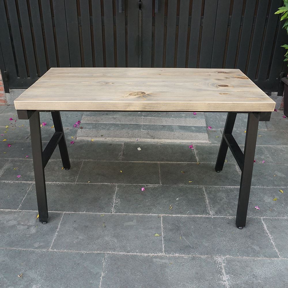 Bàn gỗ thông chân sắt chữ A lắp ráp sơn tĩnh điện