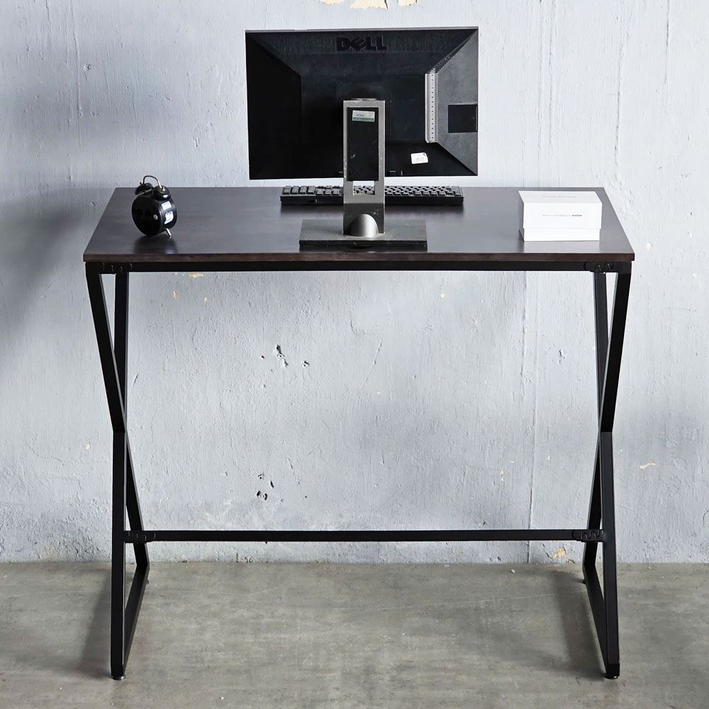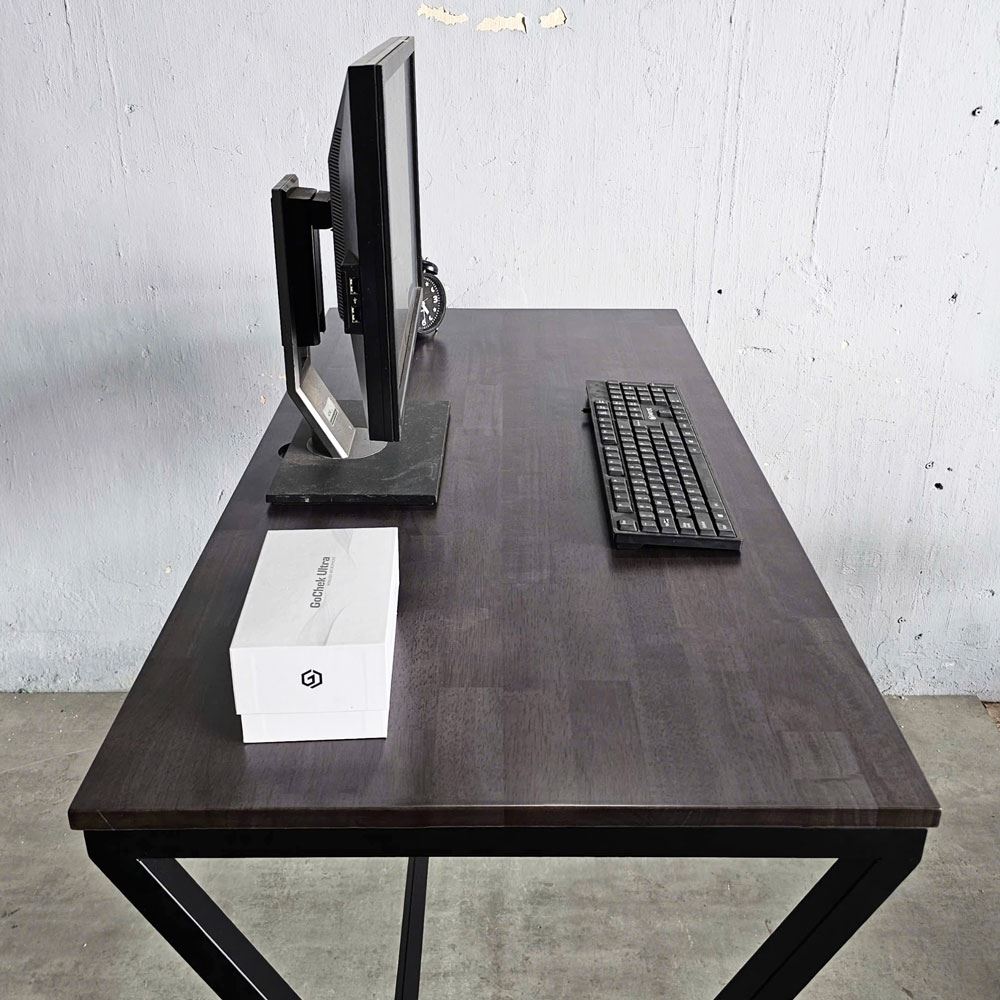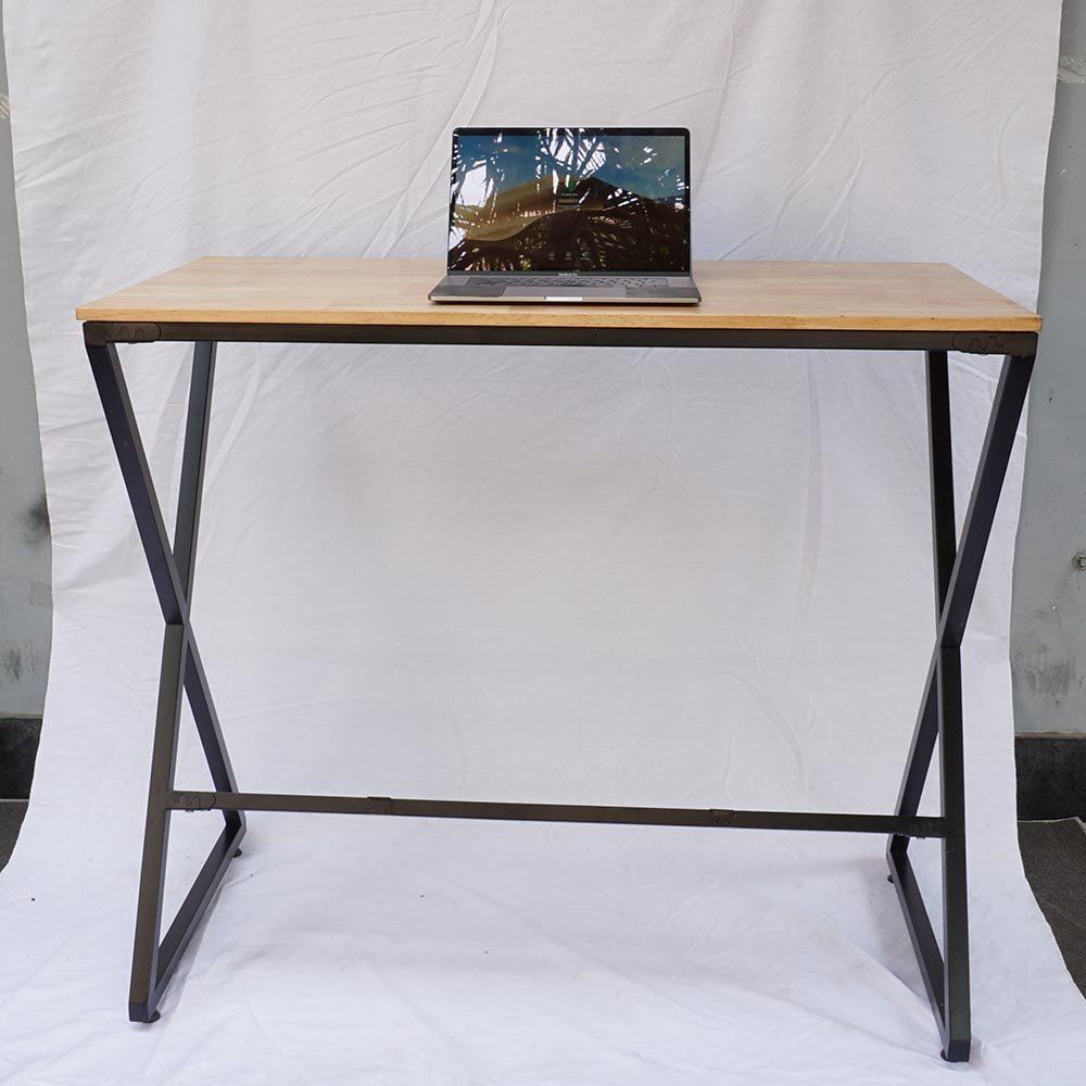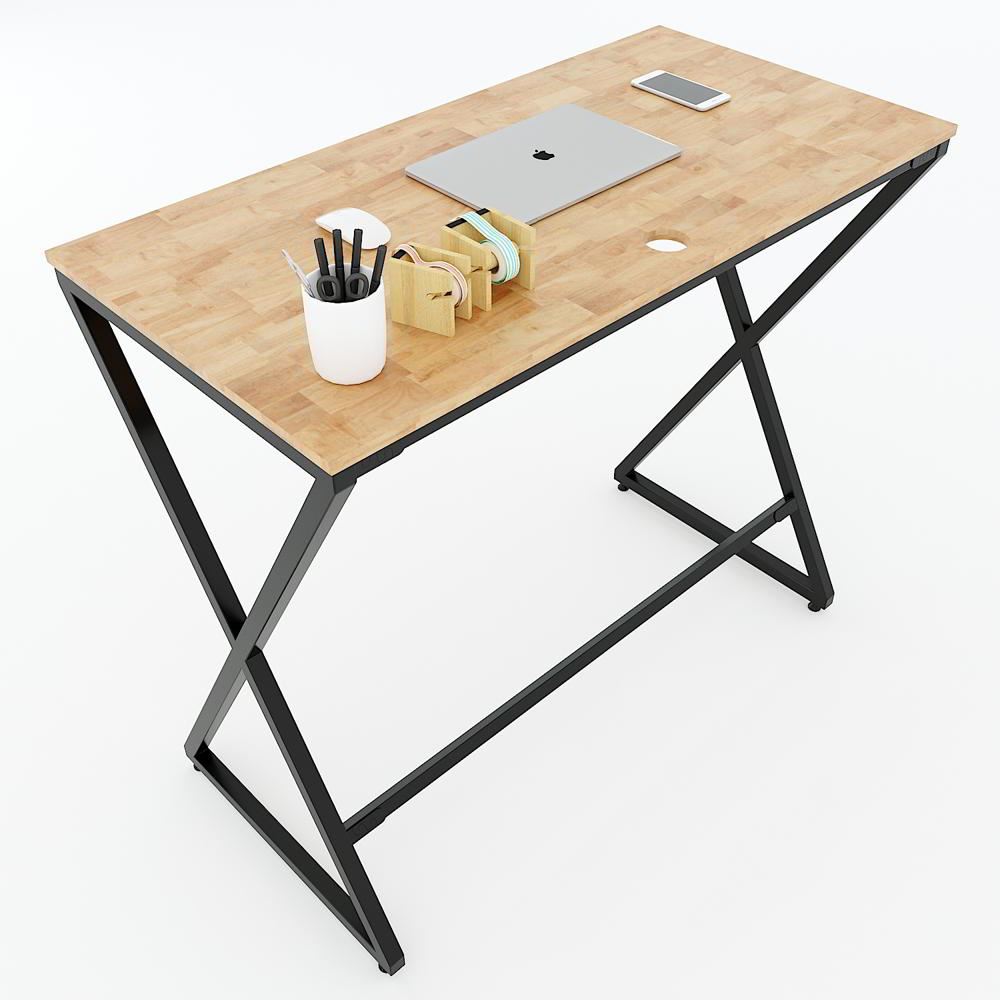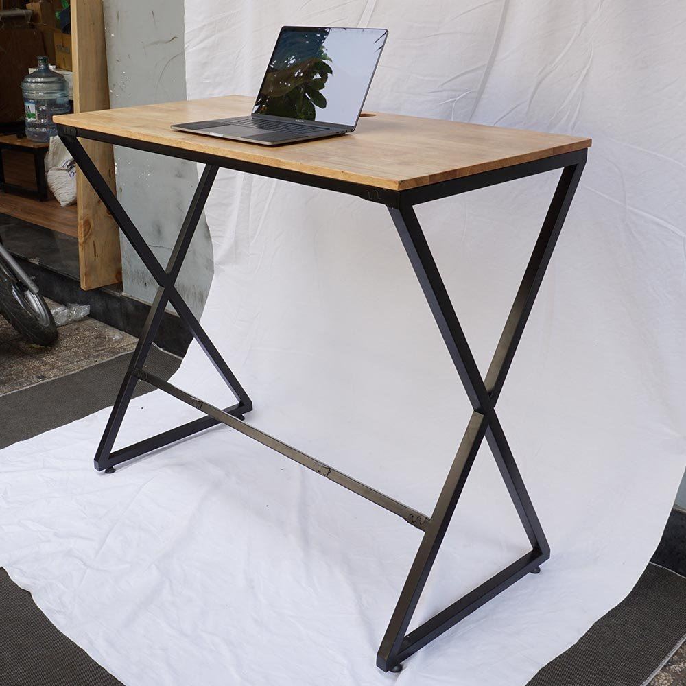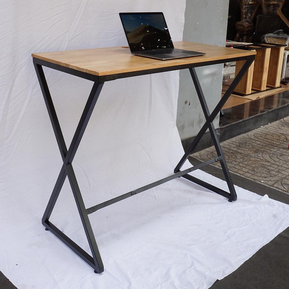 Bàn làm việc gỗ cao su chân sắt láp ráp có độ cao 105cm