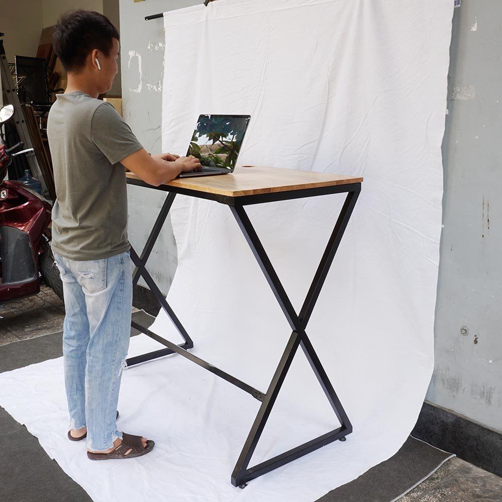 Bàn làm việc đứng mặt bàn gỗ cao su được xử lý chống thấm nước, cong vênh
