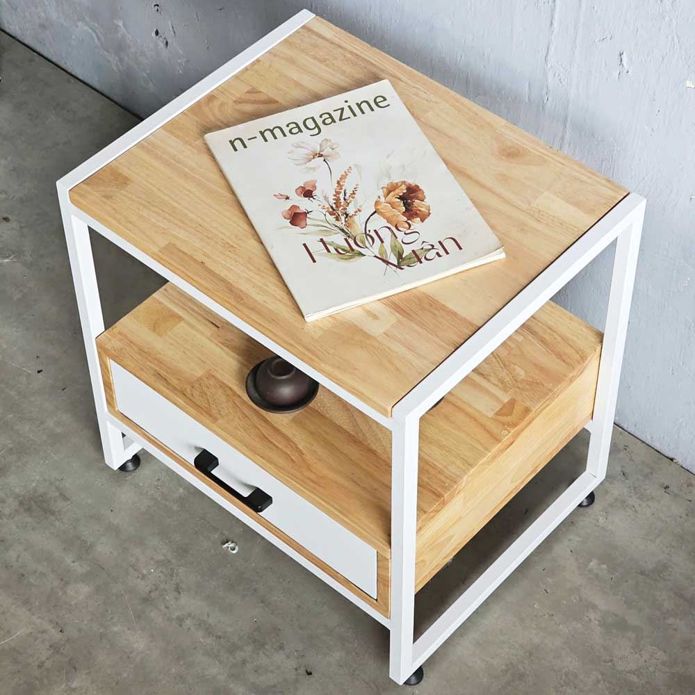 Tủ đầu giường TDG68011 là sự kết hợp tinh tế giữa nét mộc mạc của gỗ tự nhiên và sự cứng cáp của khung sắt, tạo nên một thiết kế vừa hiện đại, vừa ấm cúng. Với kích thước nhỏ gọn 50x40x40cm, chiếc tủ không chỉ là nơi lưu trữ tiện lợi mà còn là điểm nhấn trang trí cho không gian phòng ngủ. Hệ thống gồm 1 ngăn kéo trơn tru và 2 tầng mở rộng rãi giúp bạn dễ dàng sắp xếp đồ dùng cá nhân, từ sách báo, điện thoại đến những vật dụng nhỏ xinh.