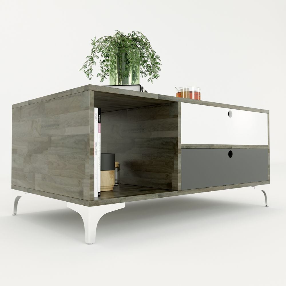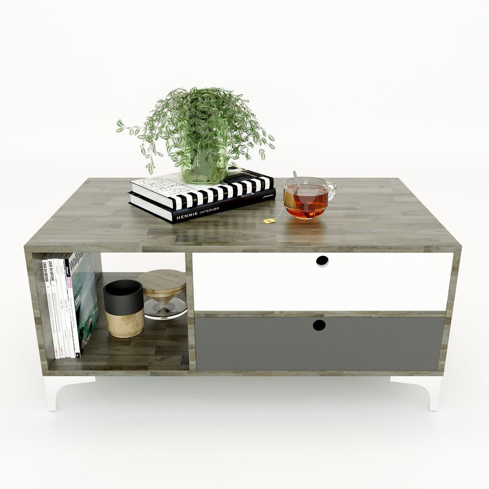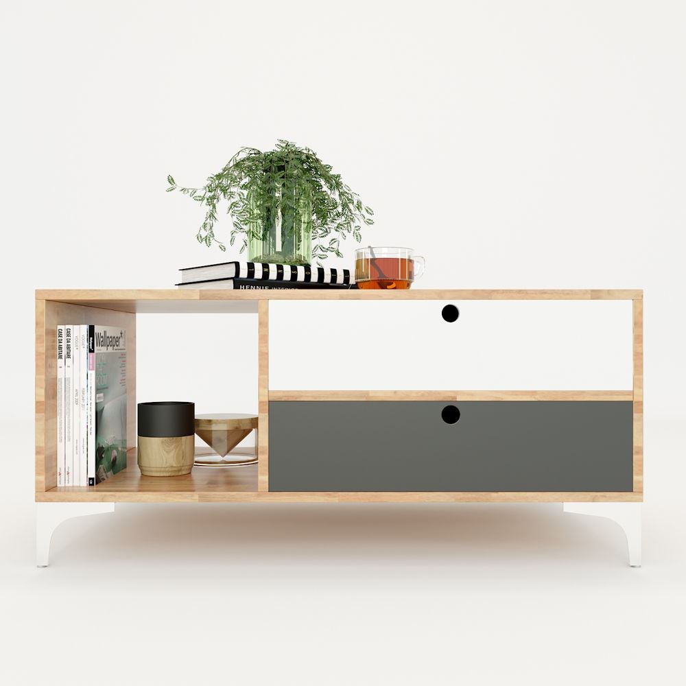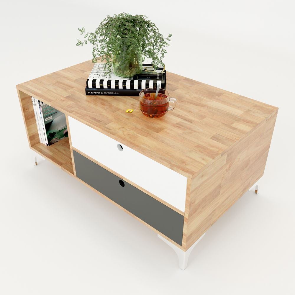 Bàn trà Osan gỗ cao su 2 hộc kéo