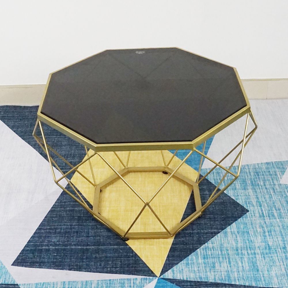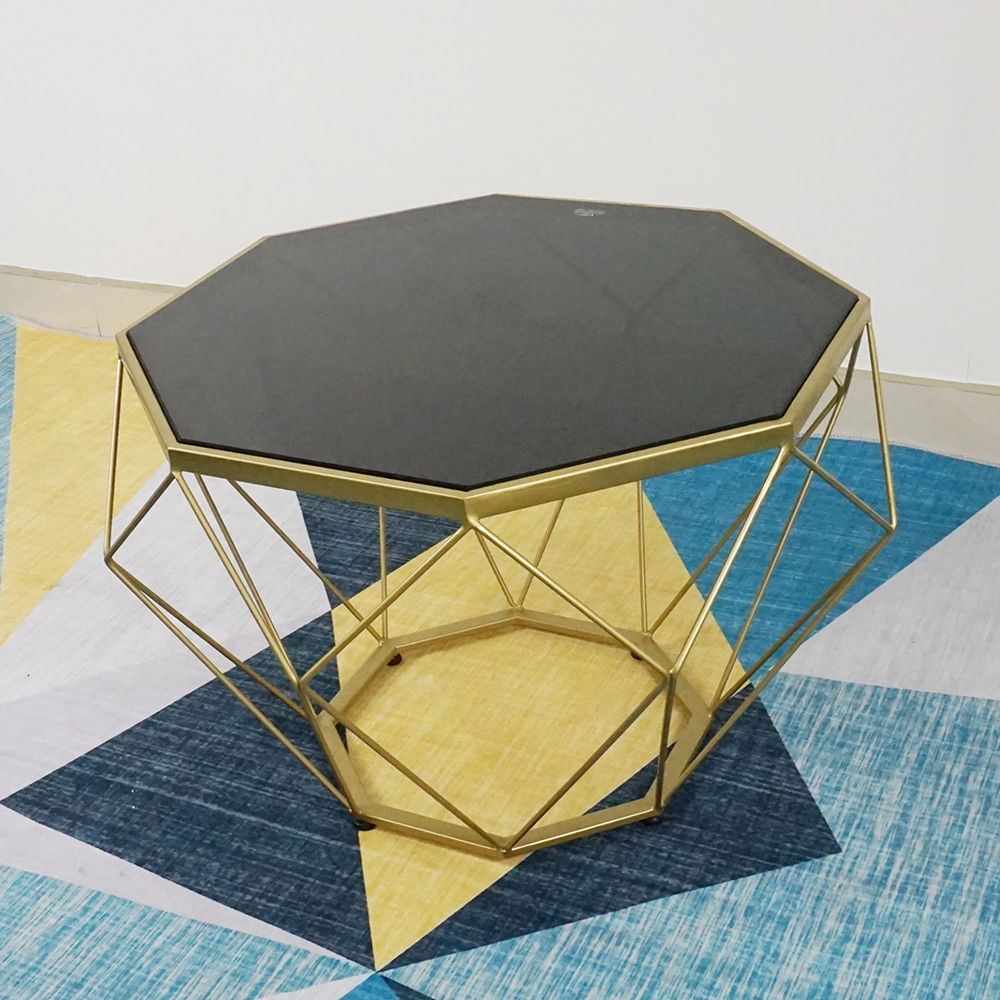 Bàn Sofa Dimond khung màu vàng đồng mặt kính đen TT68051 với khung sắt ti tròn phi 6mm nhỏ nhắn kết hợp với khung sắt hộp tạo nên hình bát giác kiểu như hình một viên kim cường đẹp mắt, mặt bàn bằng kính cường lực đen hình Bát giác kết hợp với màu vàng đồ