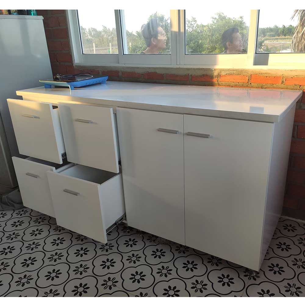 Tủ bếp dưới 1m6 gỗ cao su tự nhiên TBD68004 với chất liệu xung quanh tủ được làm từ gỗ cao su AA tiêu chuẩn xuất khẩu, cửa tủ được làm từ gỗ MDF, đã qua xử lý chống cong vênh và chống thấm tốt. Thiết kế với kiểu dáng thông minh với các ngăn tủ được sắp xếp hợp lý tạo ra sự thuận tiện khi sử dụng cũng như là mang lại nguồn cảm hứng cho người nội trợ. Chiều dài tủ 160cm vừa nhỏ nhưng vẫn đầy đủ tiện nghi, phù hợp với những phòng bếp có diện tích khiêm tốn giúp làm cho không gian còn lại của phòng bếp được rộng rãi hơn.