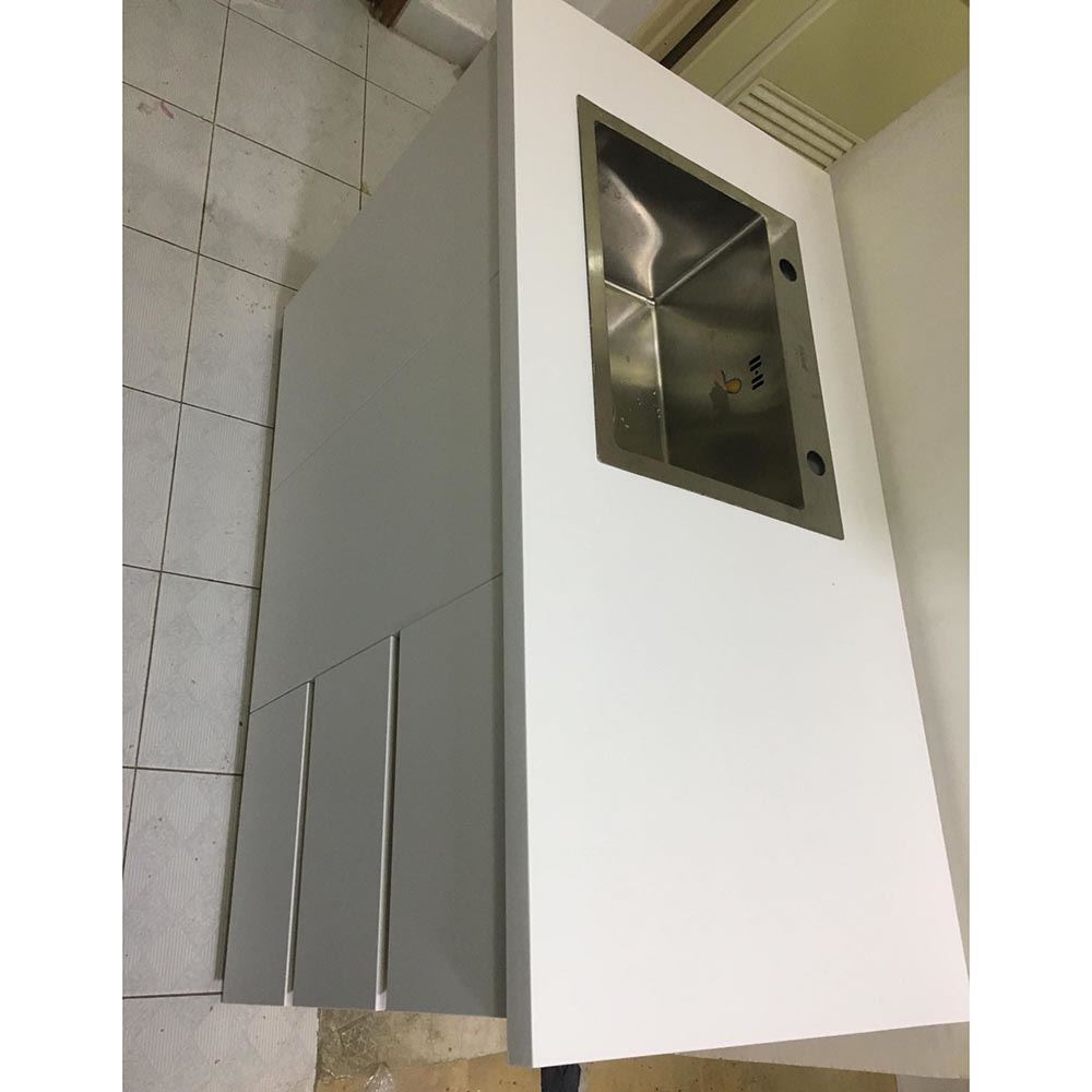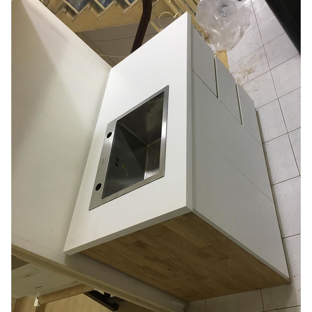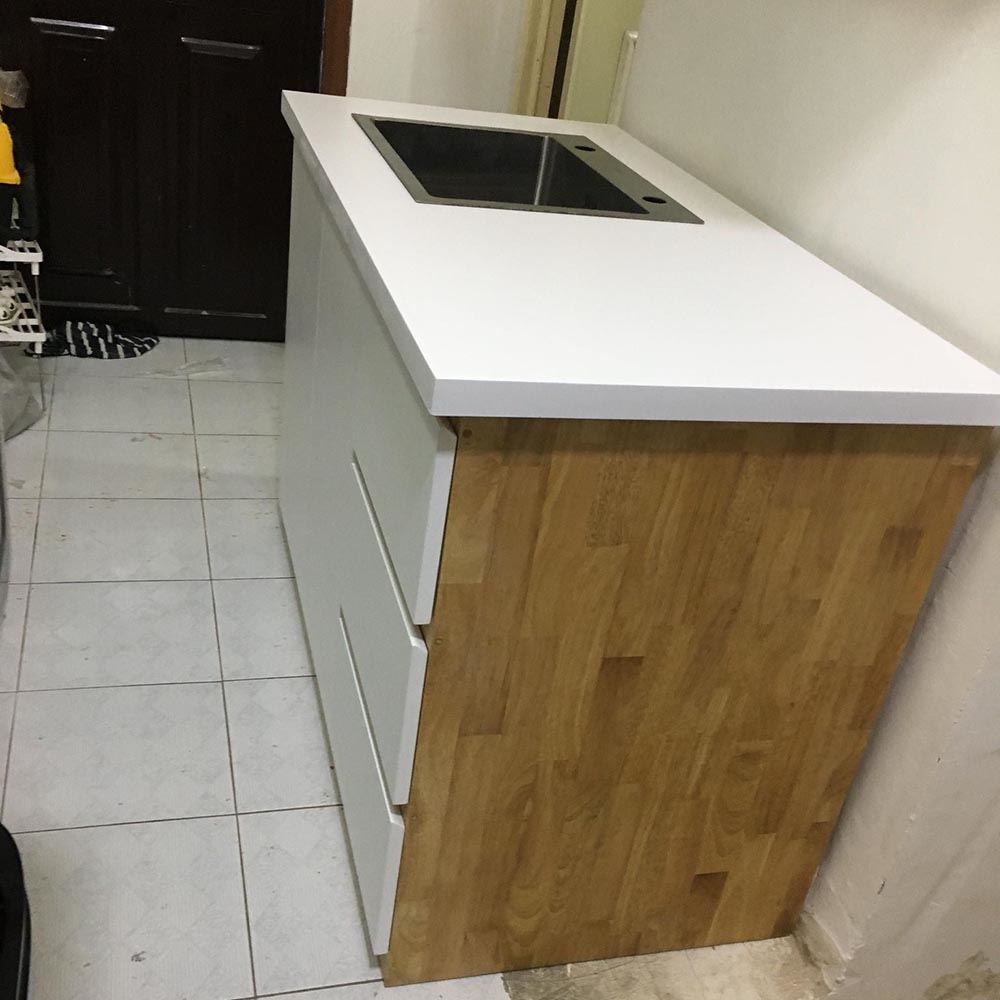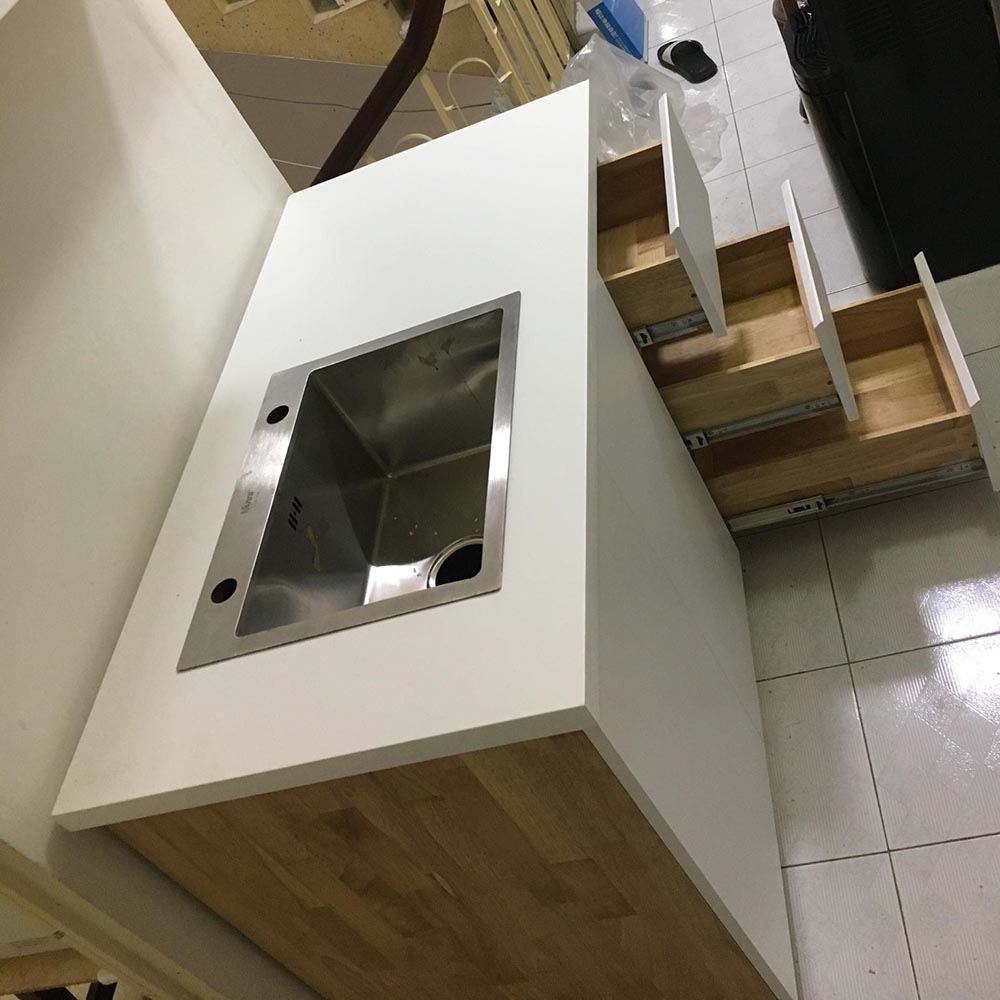 Tủ bếp nhỏ gọn bằng gỗ cao su mặt đá