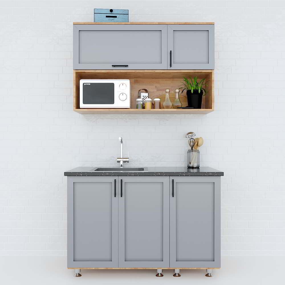 Tủ bếp trên 1m2 nhỏ gọn gỗ cao su TBT68007