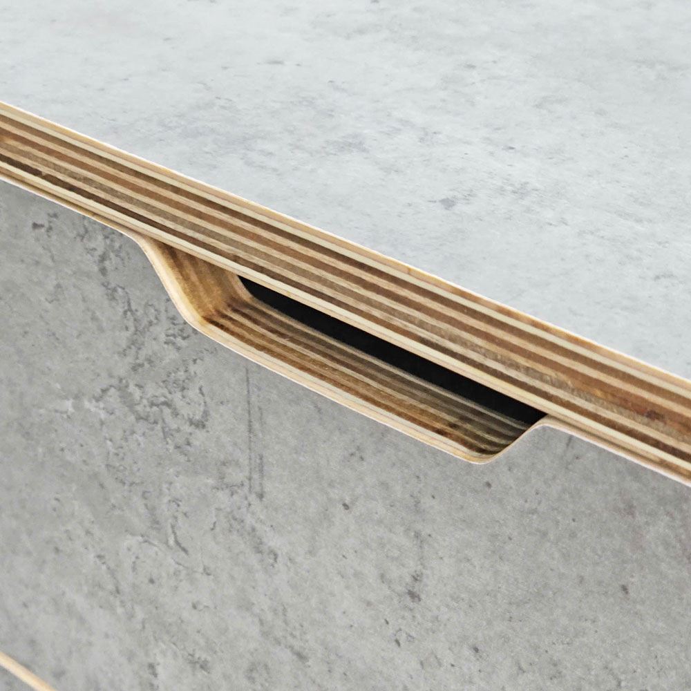 Tủ được làm bằng chất liệu plywood, đây là một loại vật liệu được đánh giá cao về độ bền, khả năng chịu lực và chống cong vênh. Việc xử lý chống thấm giúp tủ chống lại tác động của môi trường, đặc biệt là trong điều kiện khí hậu ẩm ướt, đảm bảo sản phẩm luôn bền đẹp theo thời gian. Điểm đặc biệt của chiếc tủ này chính là phần cạnh ván plywood được để lộ ra. Đây không chỉ là một chi tiết thiết kế độc đáo mà còn thể hiện sự tinh tế. Cạnh ván lộ ra tạo nên một đường viền tự nhiên, mang đến vẻ đẹp mộc mạc, cá tính và đậm chất “thật” bên trong sản phẩm.