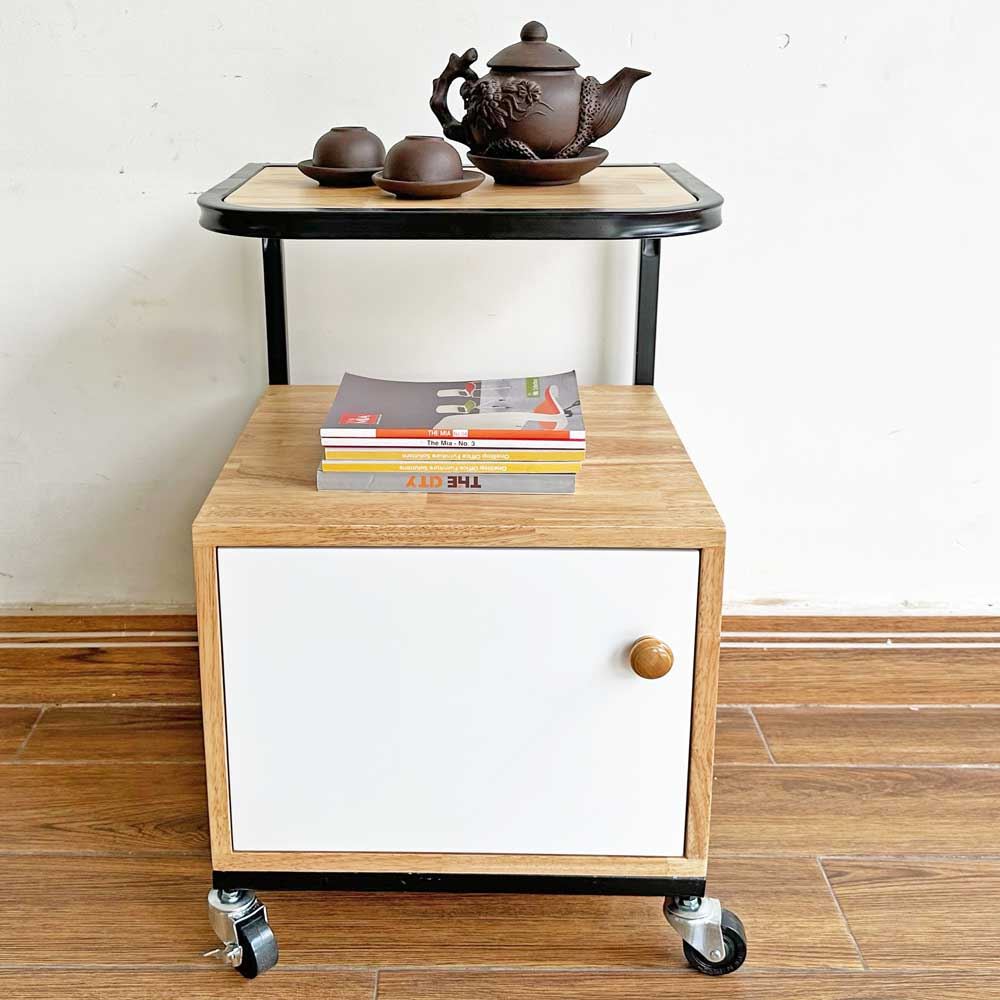 Tủ đầu giường di động TDG68053 được trang bị thêm một ngăn hộc để đồ tiện lợi, giúp bạn dễ dàng cất gọn các món đồ dùng cá nhân. Phía trên tủ được bố trí thêm mặt bàn nhỏ, bạn có thể tận dụng như một loại bàn ăn linh động nhỏ hoặc bàn trang điểm mỗi khi cần. Khi đã sử dụng làm bàn xong thì có thể dọn gọn gàng lại và sử dụng nó như một chiếc tủ cạnh giường ngủ bình thường. Với các không gian sống có diện tích nhỏ tủ đầu giường di động TDG68053 sẽ là sự lựa chọn rất tuyệt vời.