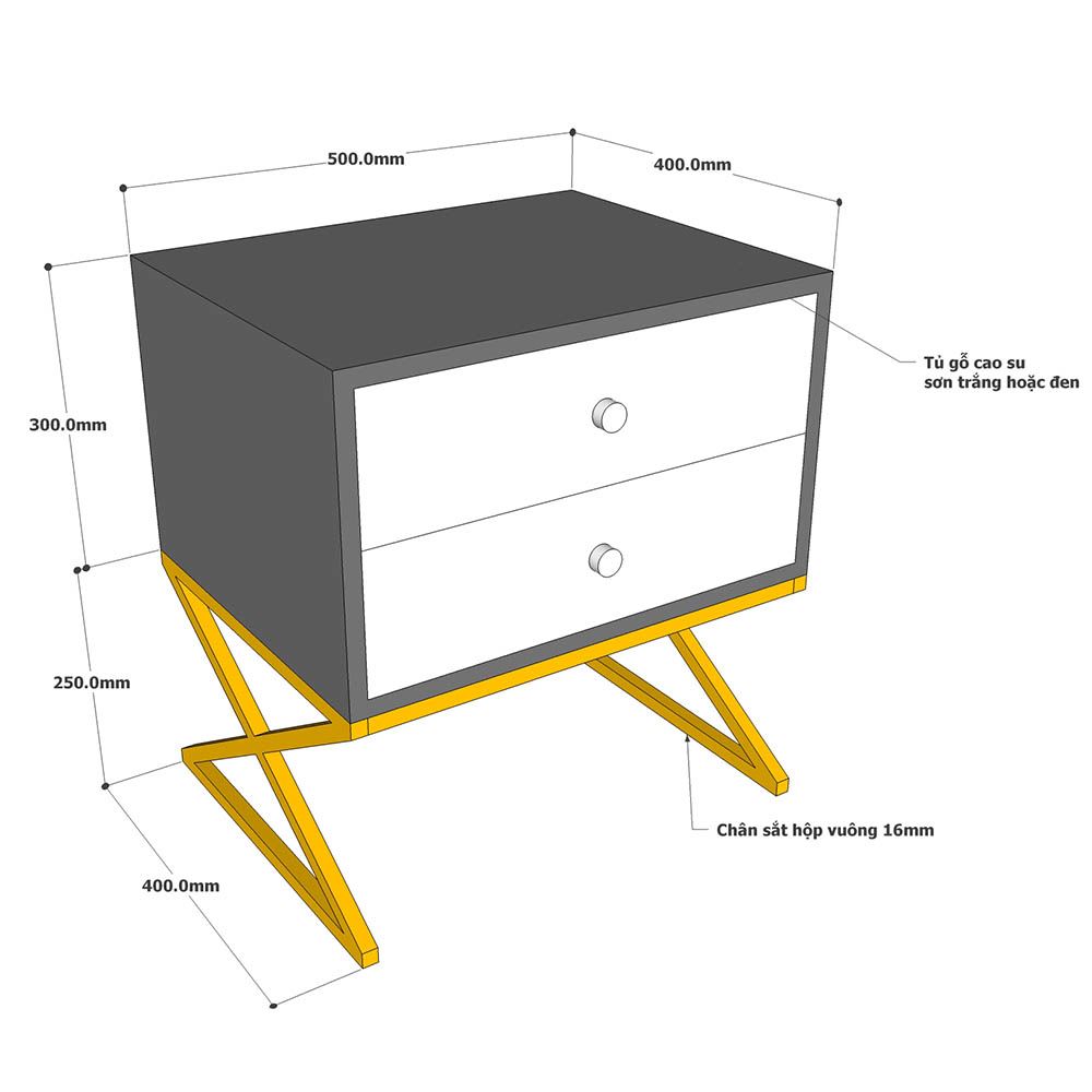 Tủ đầu giường XO gỗ cao su chân sắt TDG68042 thiết kế 2 hộc kéo với điểm nhấn ở chân sắt hình chữ X rất hiện đại được sơn với 3 màu lựa chọn, tủ 2 hộc kéo kích thước vừa đủ cho các không gian phòng ngủ kết hợp với giường, ngoài ra mẫu XO còn phù hợp làm tủ cá nhân trong phòng làm việc hay mọi nhu cầu lưu trữ khác.