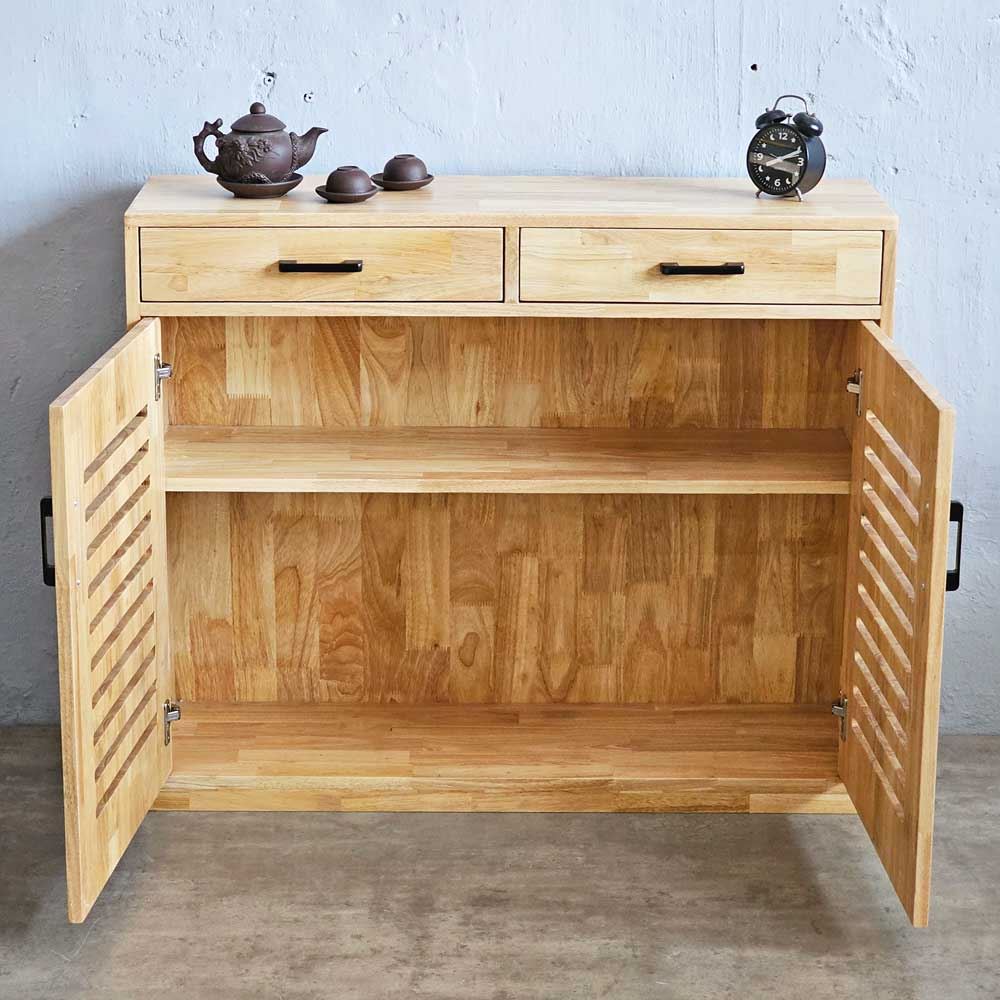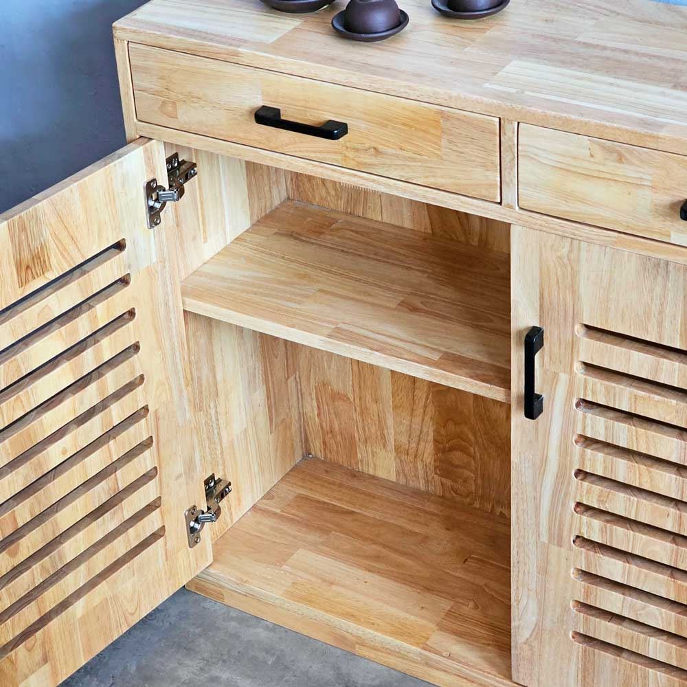 Tủ được làm bằng chất liệu gỗ cao su AA, chuẩn xuất khẩu, đã xử lý chà nhám và phủ chống thấm nước. Chất gỗ cao cấp không chỉ mang đến vẻ đẹp ấm cúng, gần gũi mà còn đảm bảo độ bền bỉ theo thời gian.