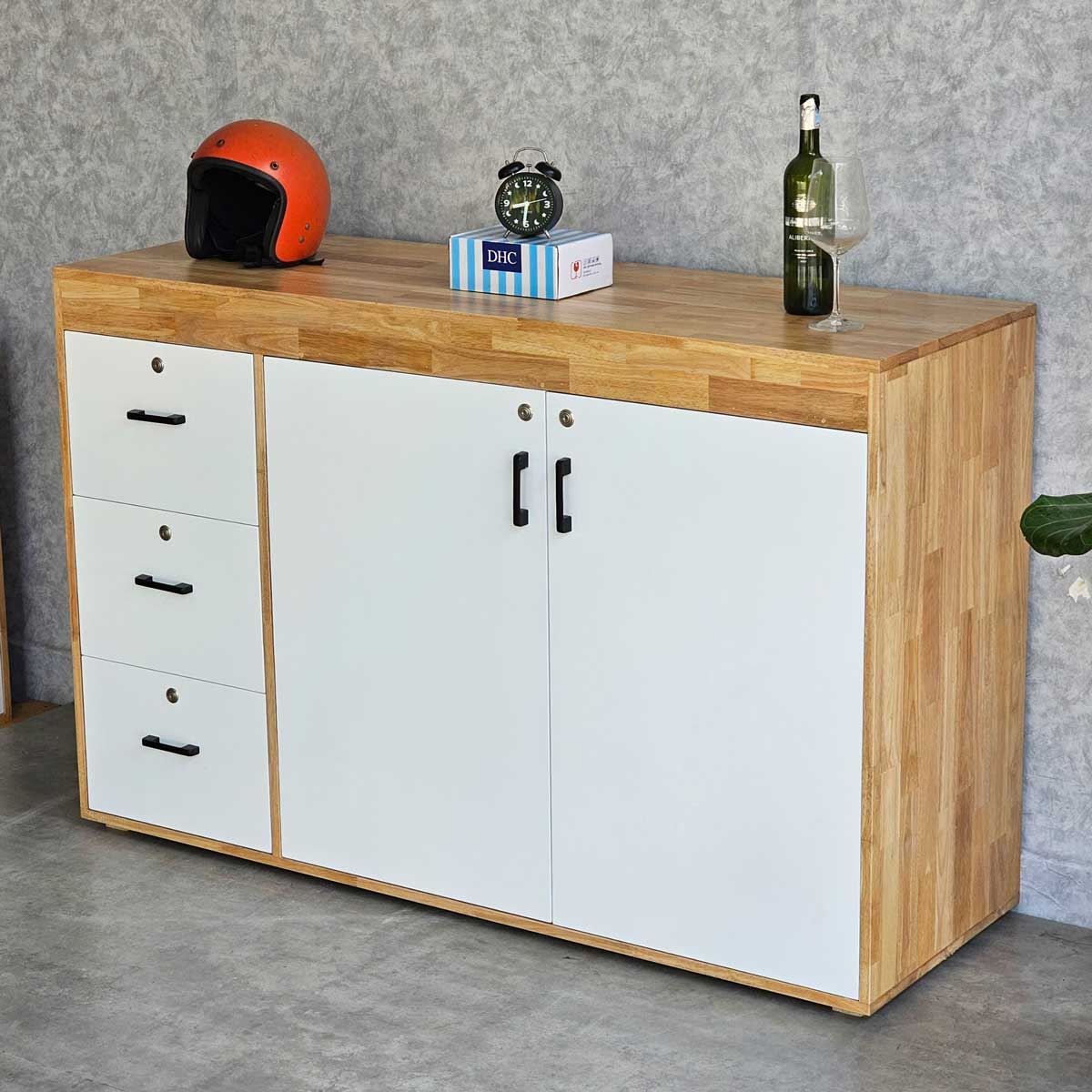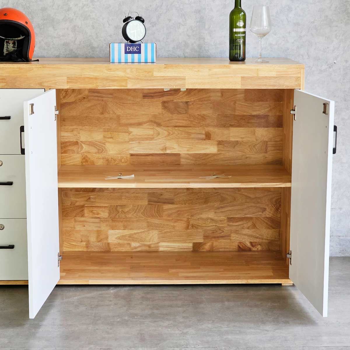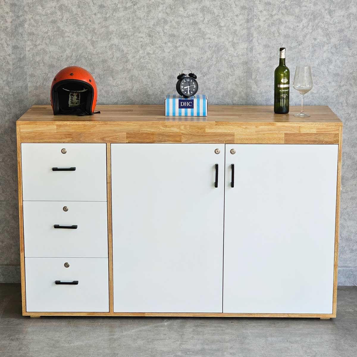 Tủ được làm từ gỗ cao su AA, chuẩn xuất khẩu, loại gỗ được đánh giá cao về độ bền bỉ, khả năng chịu lực tốt. Bề mặt gỗ đã được xử lý chà nhám mịn màng, và phủ chống thấm nước. Chất liệu gỗ tự nhiên còn mang đến vẻ đẹp mộc mạc, ấm áp, góp phần tô điểm cho không gian thêm phần sang trọng.