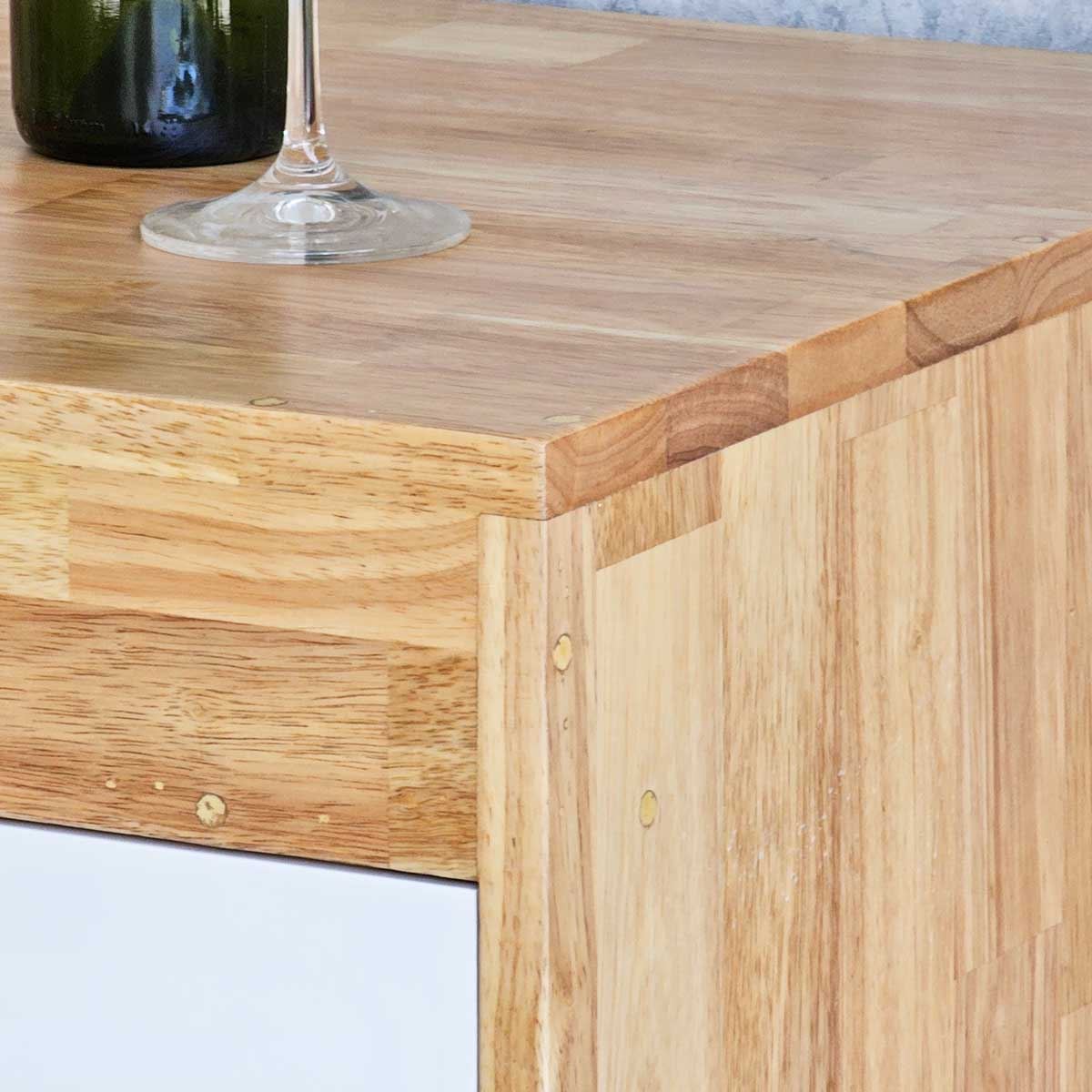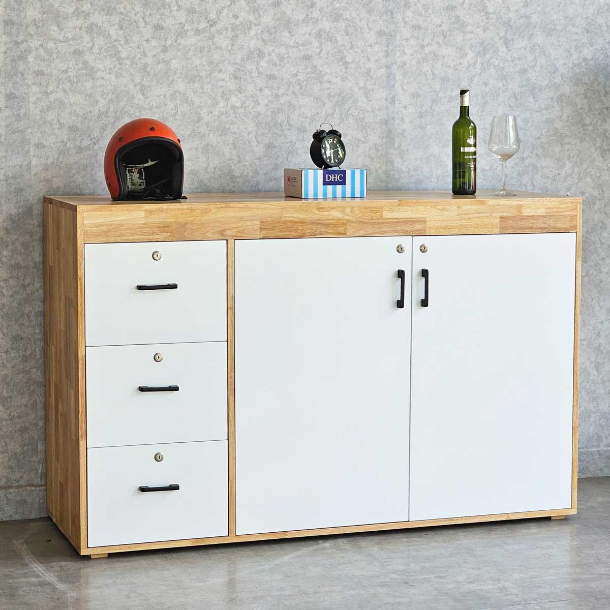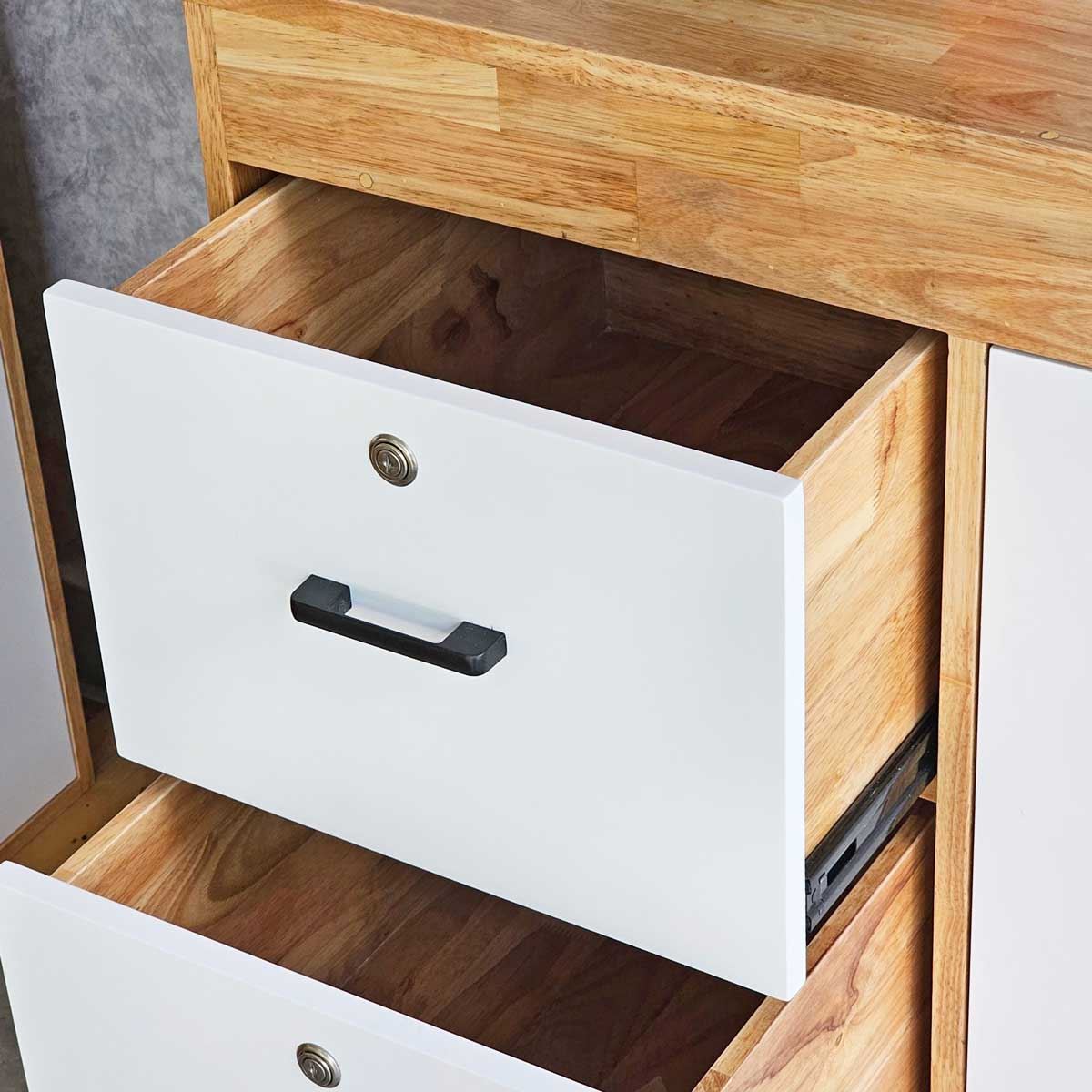 Tủ được làm từ gỗ cao su AA, chuẩn xuất khẩu, loại gỗ được đánh giá cao về độ bền bỉ, khả năng chịu lực tốt. Bề mặt gỗ đã được xử lý chà nhám mịn màng, và phủ chống thấm nước. Chất liệu gỗ tự nhiên còn mang đến vẻ đẹp mộc mạc, ấm áp, góp phần tô điểm cho không gian thêm phần sang trọng.